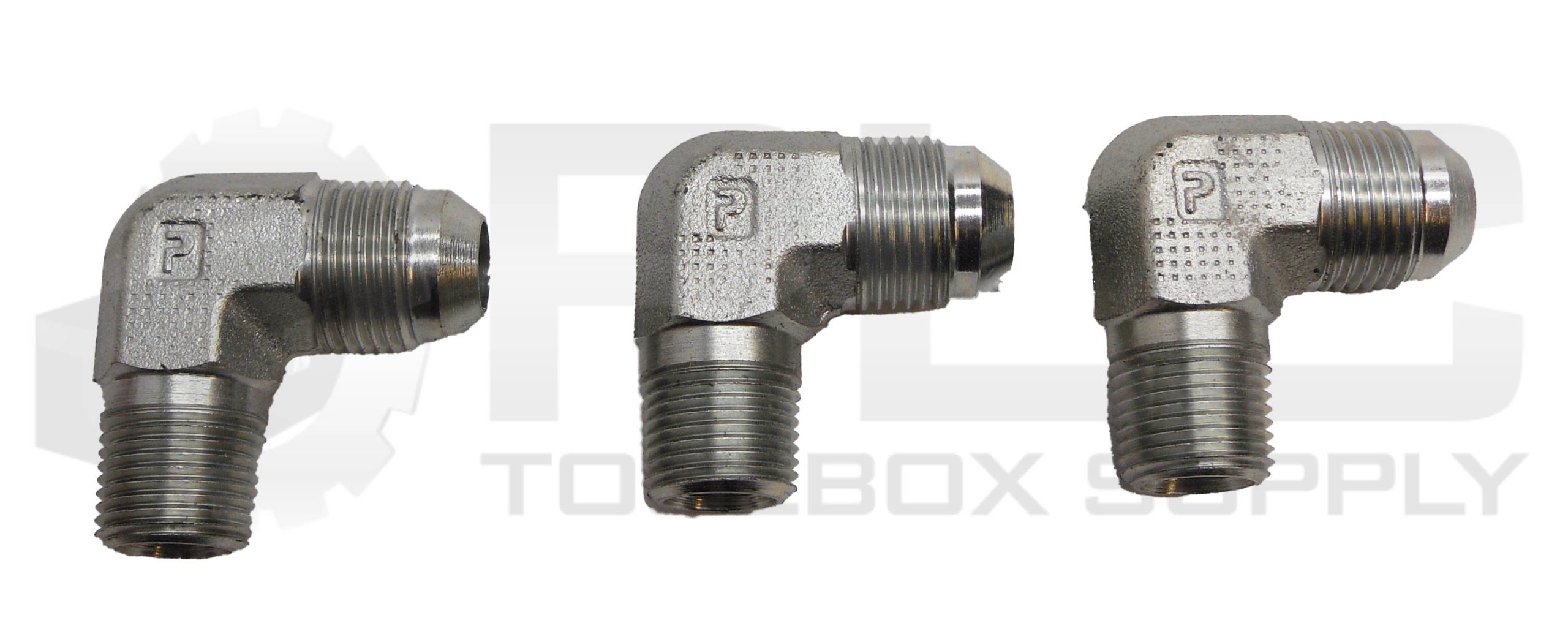 LOT OF 3 NEW PARKER 3/4″ OD X 7/16″ ID FLARE 90 DEG ELBOW FITTING 11/16″ OD