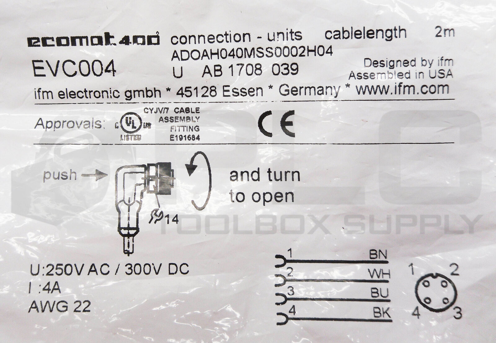 LOT OF 3 SEALED NEW IFM ELECTRONIC EVC004 4 PIN FEMALE CABLE 250VAC 300VDC 4A