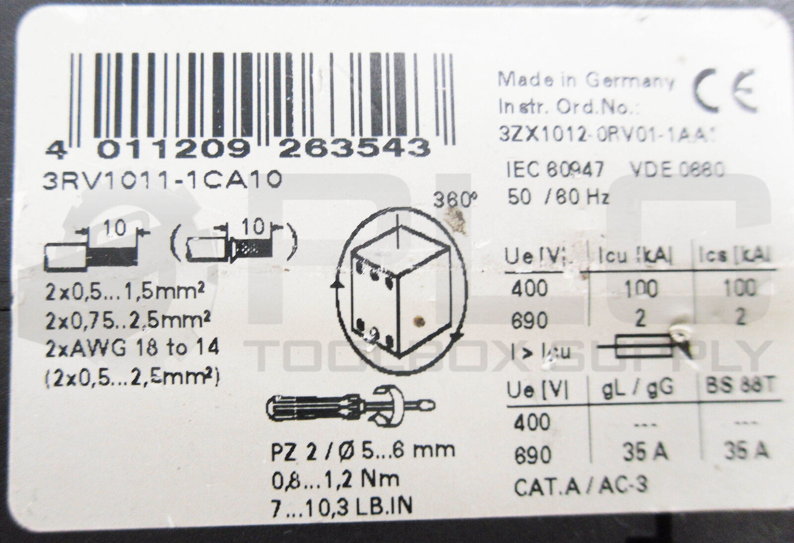 • LOT OF 3 SIEMENS 3RV1011-1CA10 CIRCUIT BREAKER 2.5A 50/60HZ 575V
