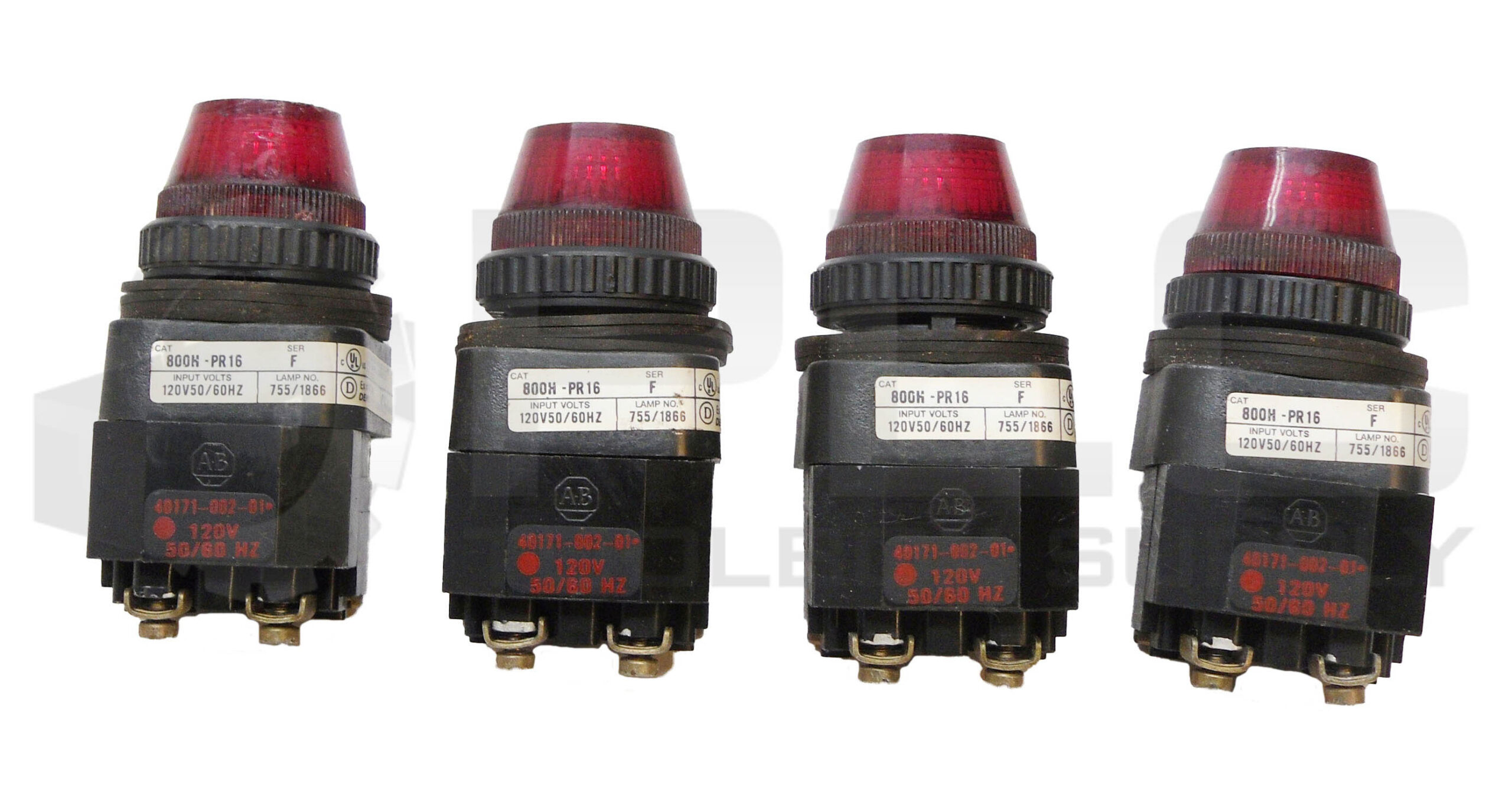 • LOT OF 4 ALLEN BRADLEY 800H-PR16 /F PILOT LIGHT RED W/ 40171-002-01 COIL
