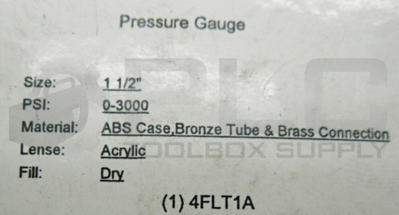 • LOT OF 4 NEW PRESSURE GAUGE 4FLT1A SIZE: 1-1/2" PSI: 0-3000, ABS CASE, 1/8" MNPT