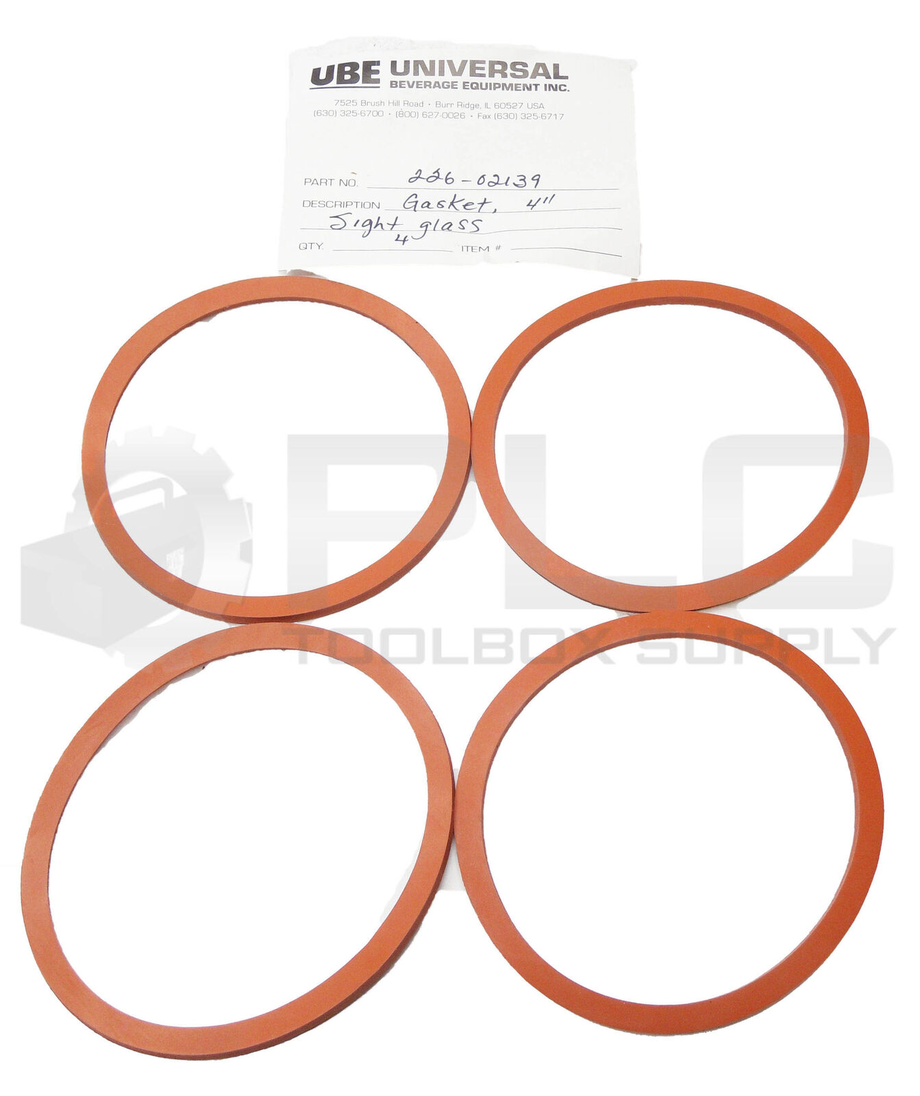LOT OF 4 NEW UBE 226-02139 4" SILICONE GASKET INSIDE 3 1/2" OUTSIDE 4"