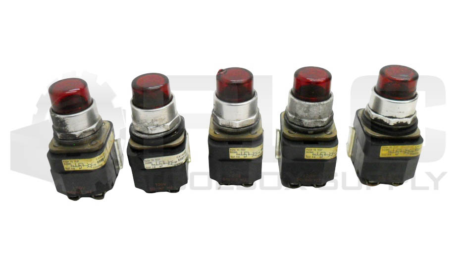 LOT OF 5 ALLEN BRADLEY 800T-PT16 /N PUSH BUTTON RED W/ 800T-XA /C CONTACT BLOCK