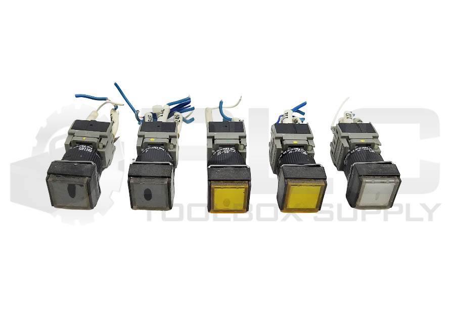 LOT OF 5 FUJI AH165-SF PUSH BUTTON, (2) BLACK, (2) YELLOW, (1) WHITE