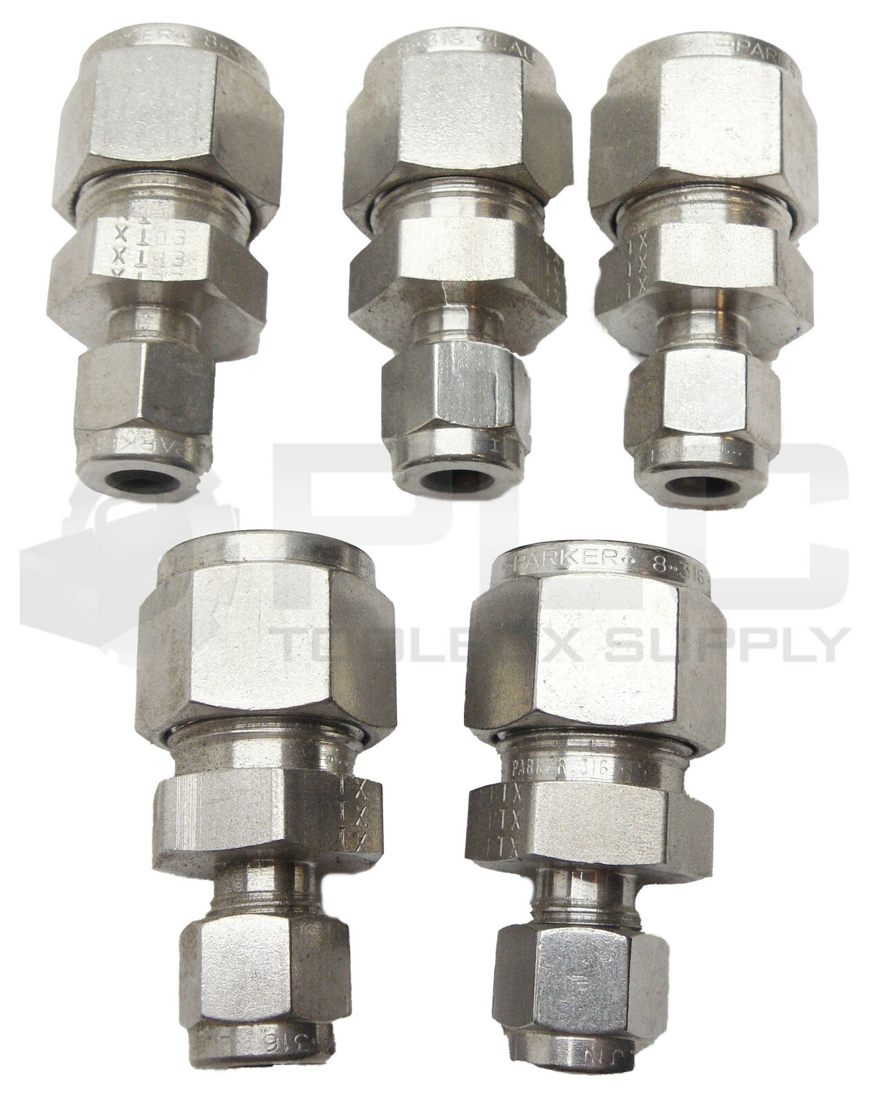 LOT OF 5 NEW PARKER 316 EBTX STRIAGHT CONNECTOR, REDUCER