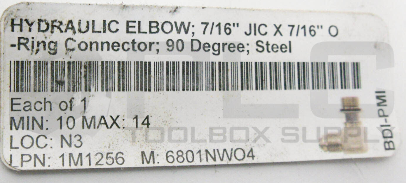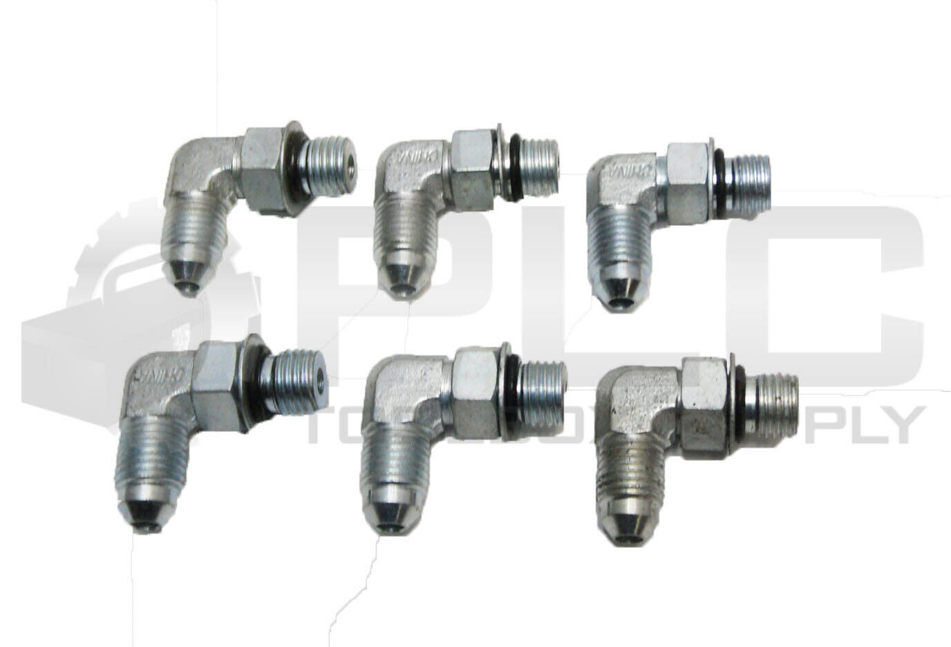 • LOT OF 6 HYDRAULIC ELBOW 7/16" JIC X 7/16" O-RING CONNECTOR, 90 DEGREE, STEEL