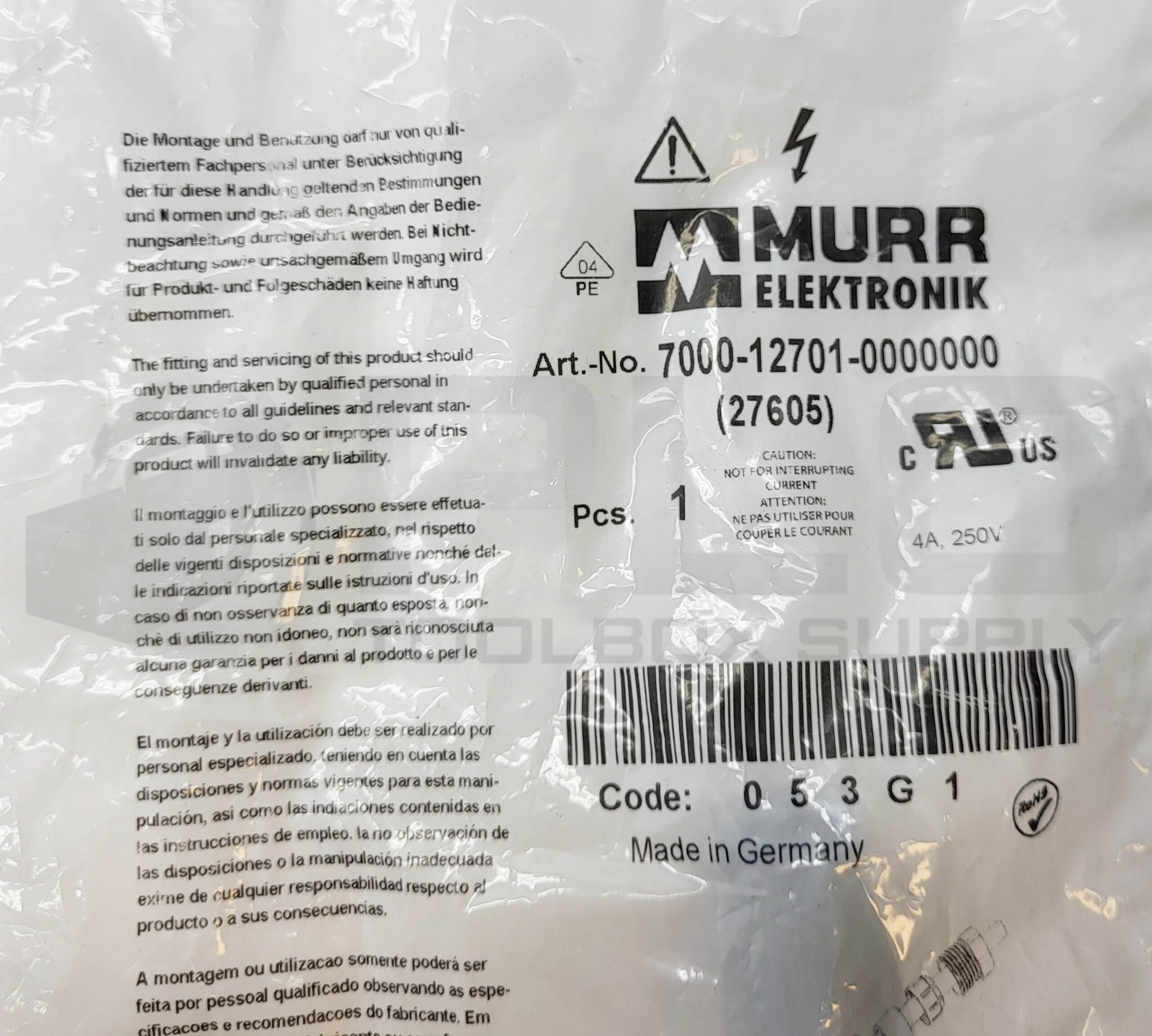 LOT OF 6 SEALED NEW MURR ELEKTRONIK 7000-12701-0000000 CONNECTOR 4A 250V 27605