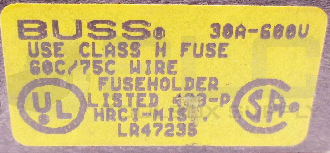 • LOT OF 7 BUSSMANN H60030-2C FUSE HOLDERS 30A 600V FOR CLASS H FUSES