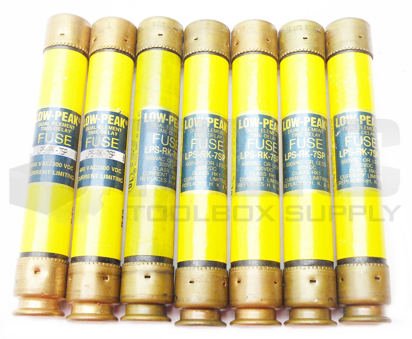 • LOT OF 7 NEW BUSSMANN LPS-RK-7SP LOW PEAK DUAL ELEMENT TIME DELAY FUSES 600VAC