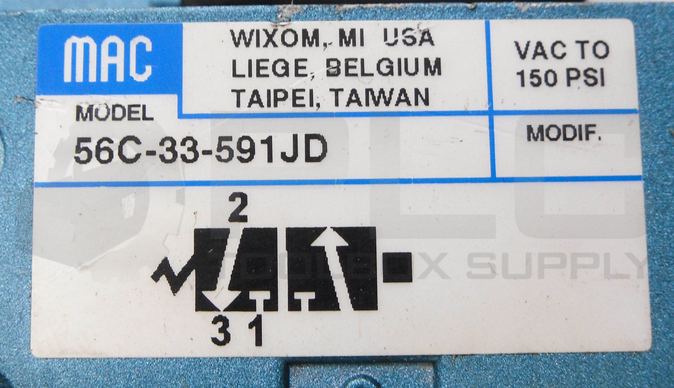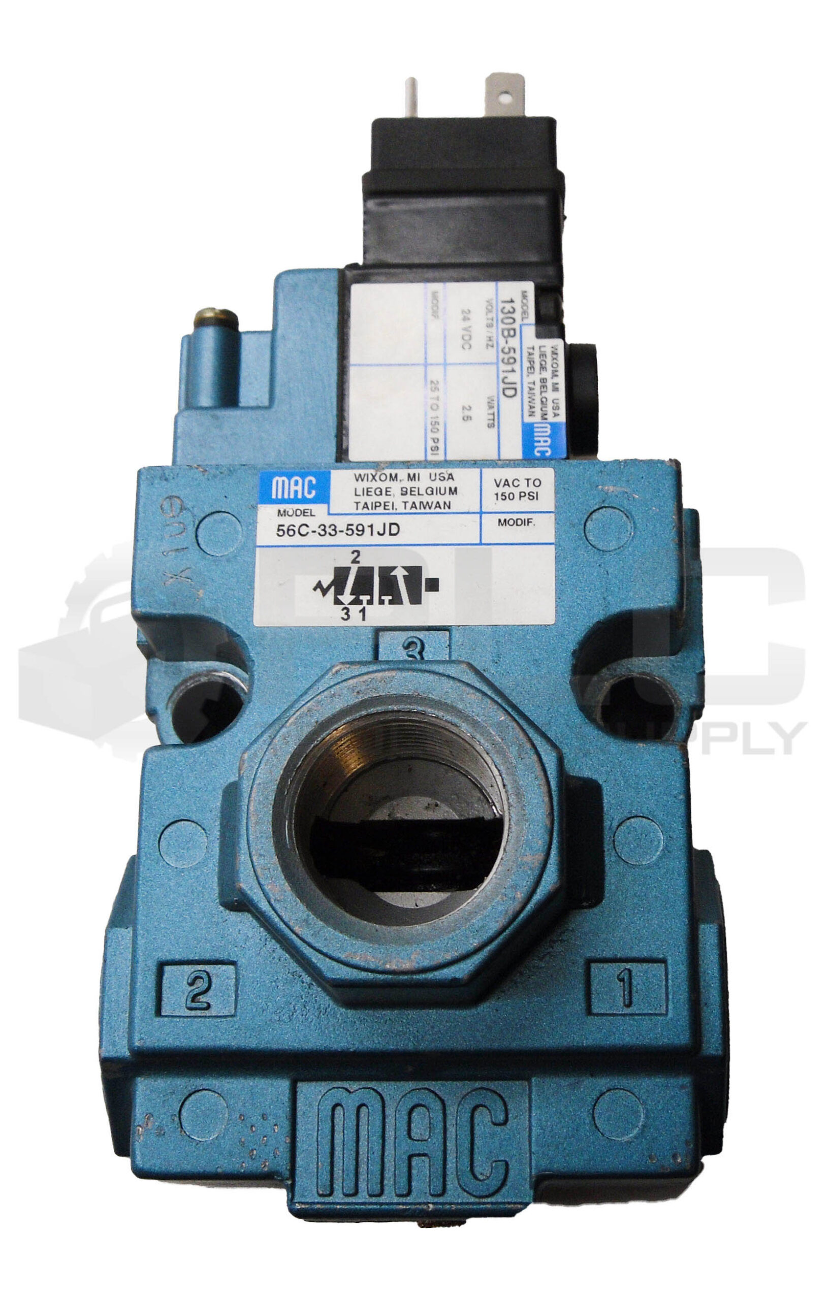 • MAC VALVES 56C-33-591JD SOLENOID VALVE 150PSI W/ 130B-591JD COIL 24VDC 2.5W