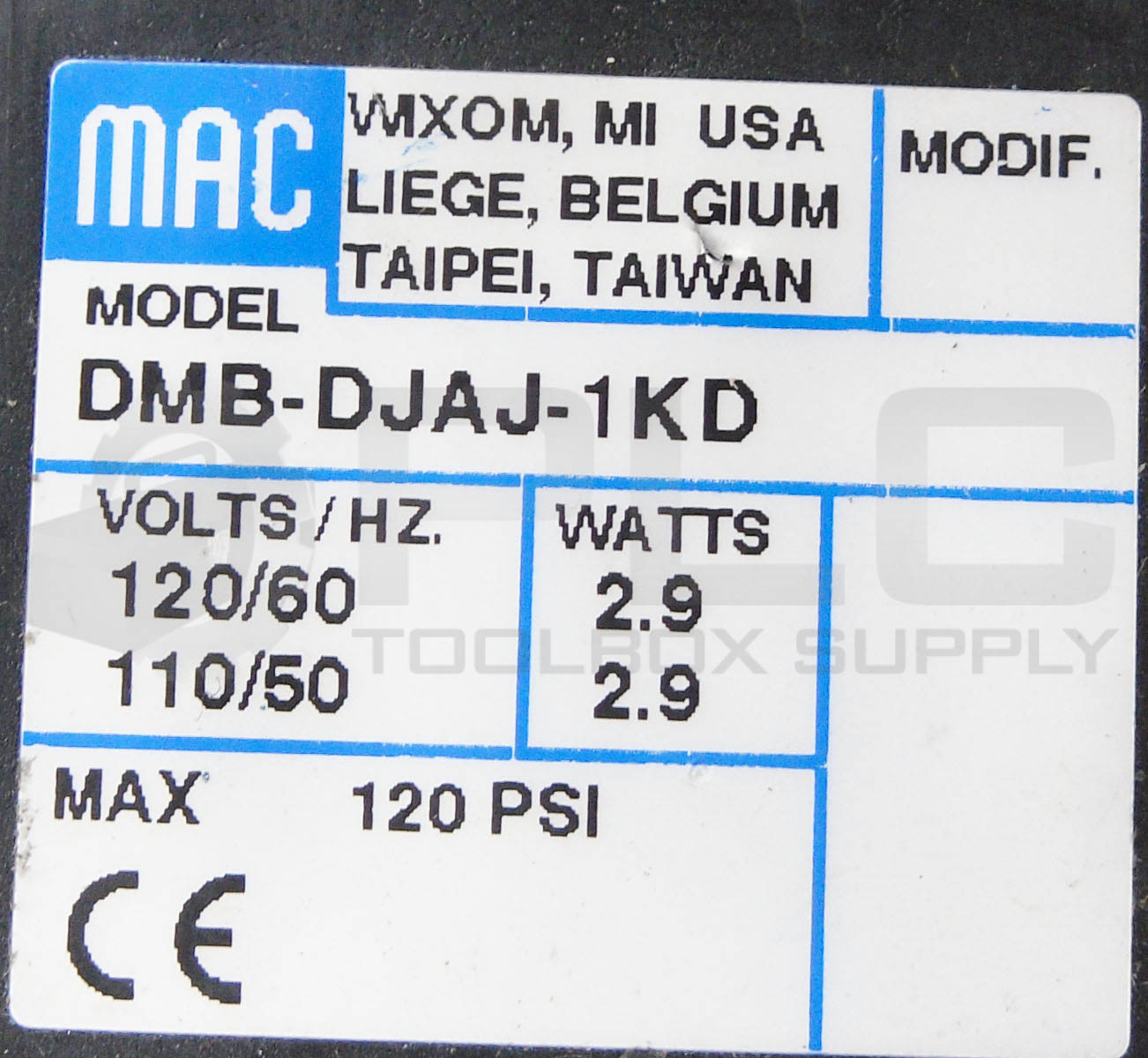 • MAC VALVES DMB-DJAJ-1KD SOLENOID COIL 110-120V 50/60HZ 120PSI 2.9W