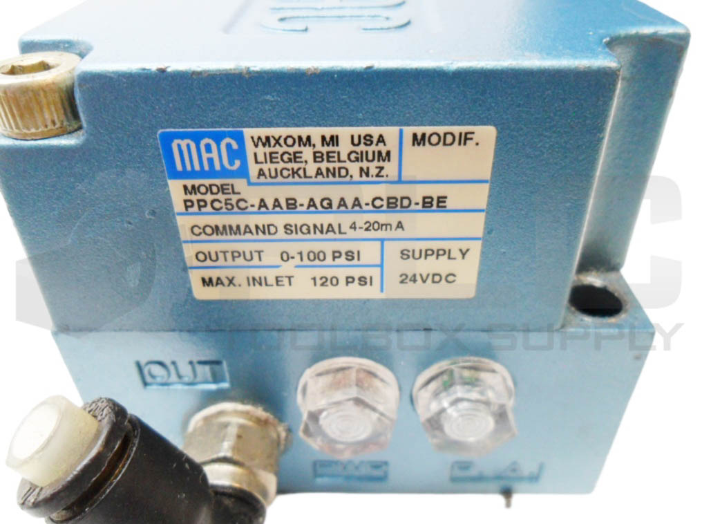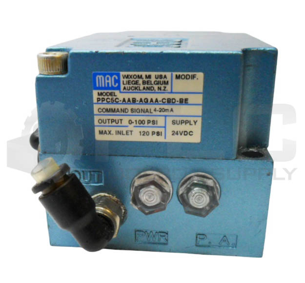 • MAC VALVES PPC5C-AAB-AGAA-CBD-BE PROPORTIONAL PRESSURE CONTROLLER 0-100PSI 24VDC