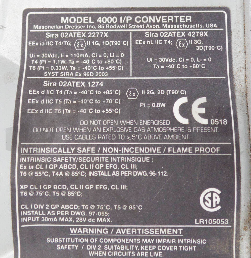 MASONELIAN 4000 I/P CONVERTER 30VDC