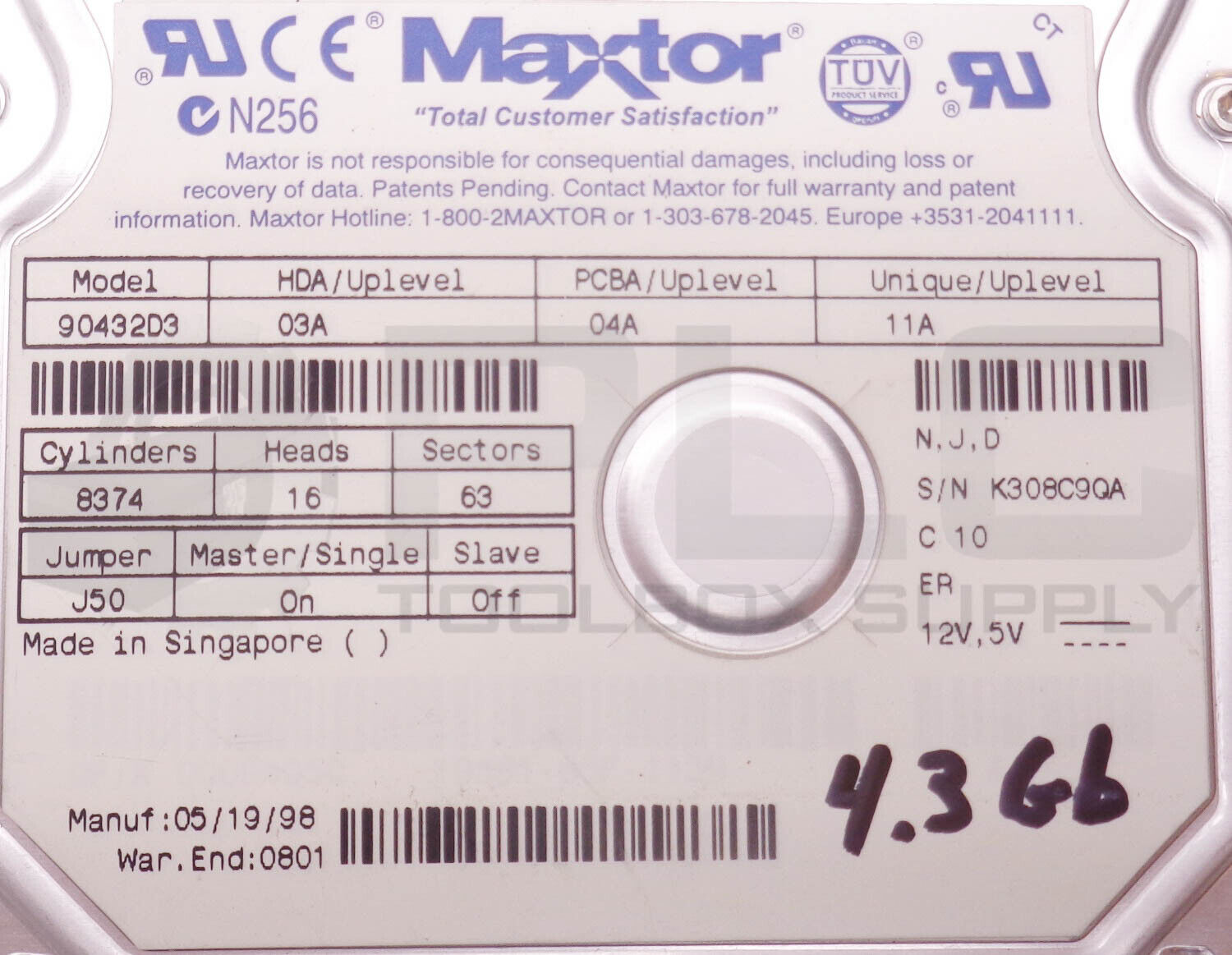 MAXTOR 90432D3 HARD DRIVE HDD, 4.3GB