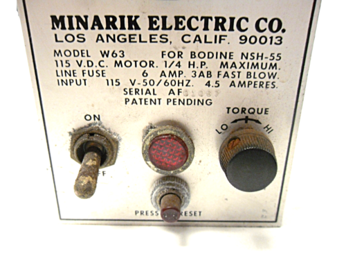 MINARIK W63 MOTOR NSH-55 6 AMPS 115V.D.C