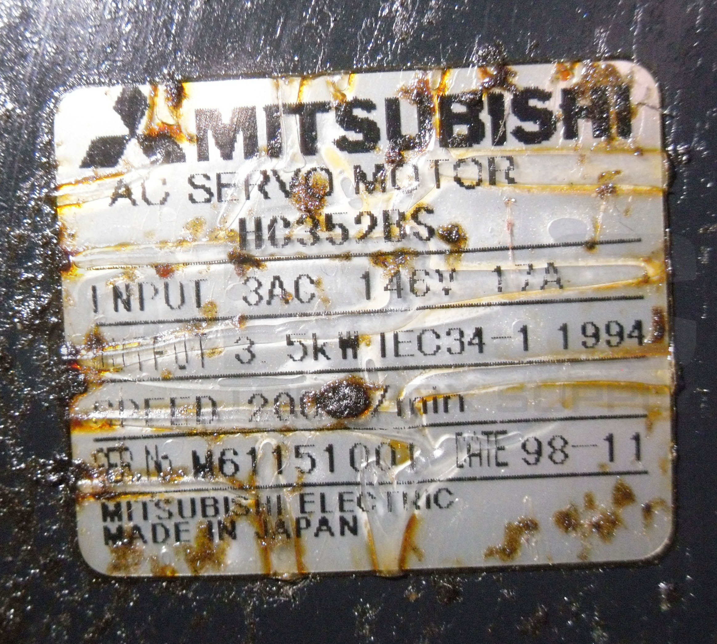 • MITSUBISHI H0352BS AC SERVO MOTOR 2000RPM 1A