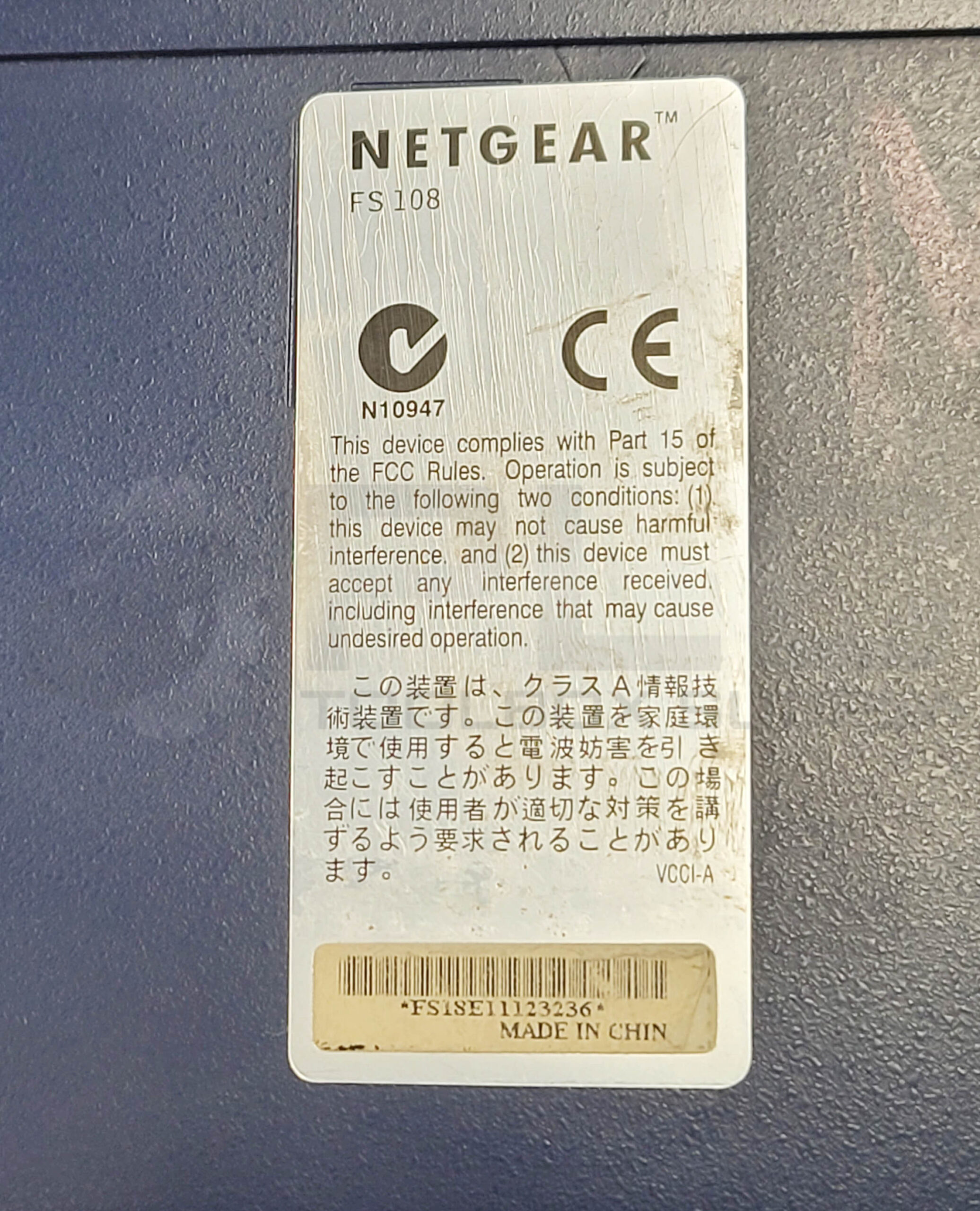 • NETGEAR FS108 FAST ETHERNET SWITCH AUTO 10/100MBPS SWITCHING