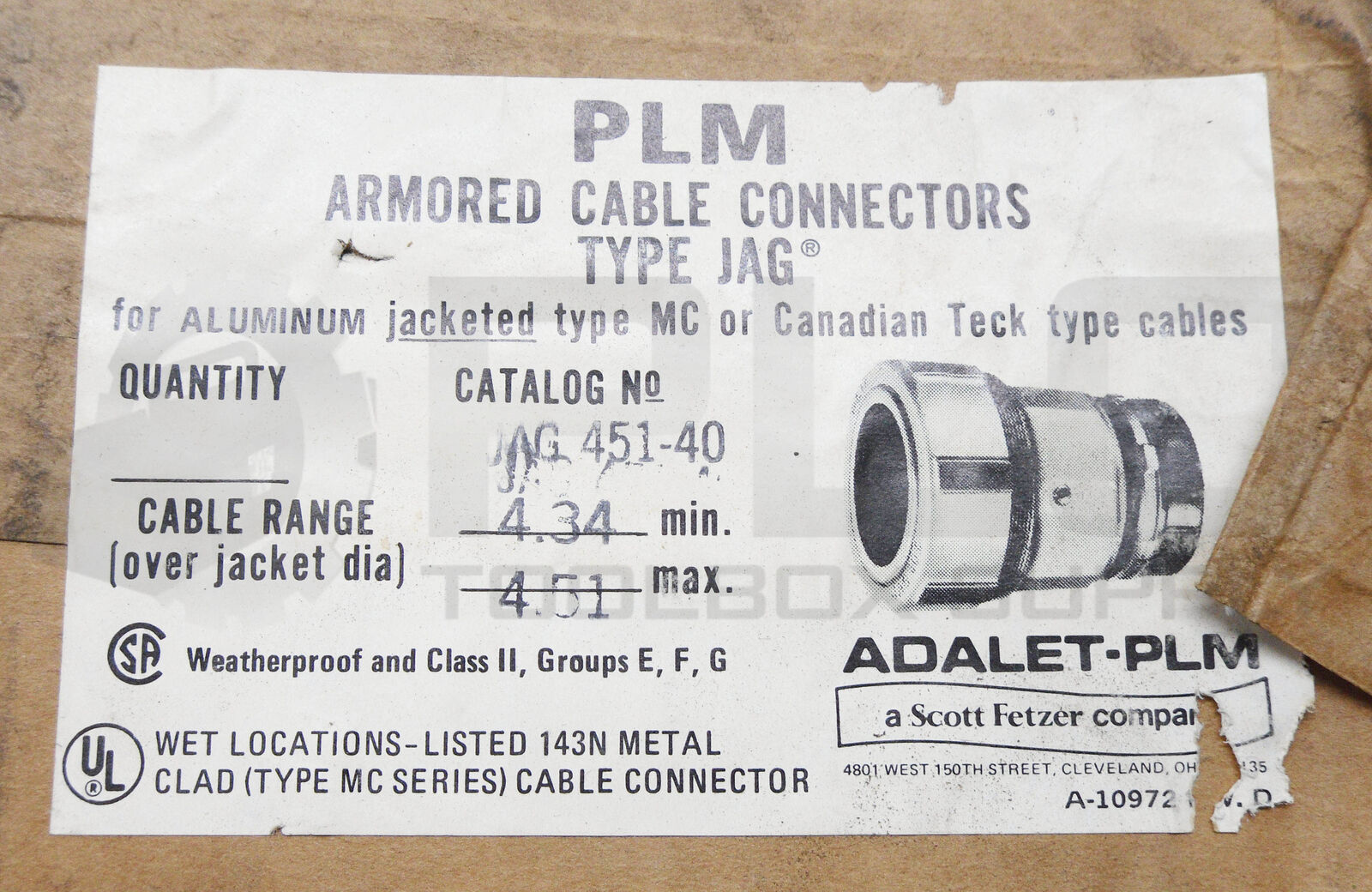 NEW ADALET-PLM JAG451-40 ARMORED CABLE CONNECTOR *READ*