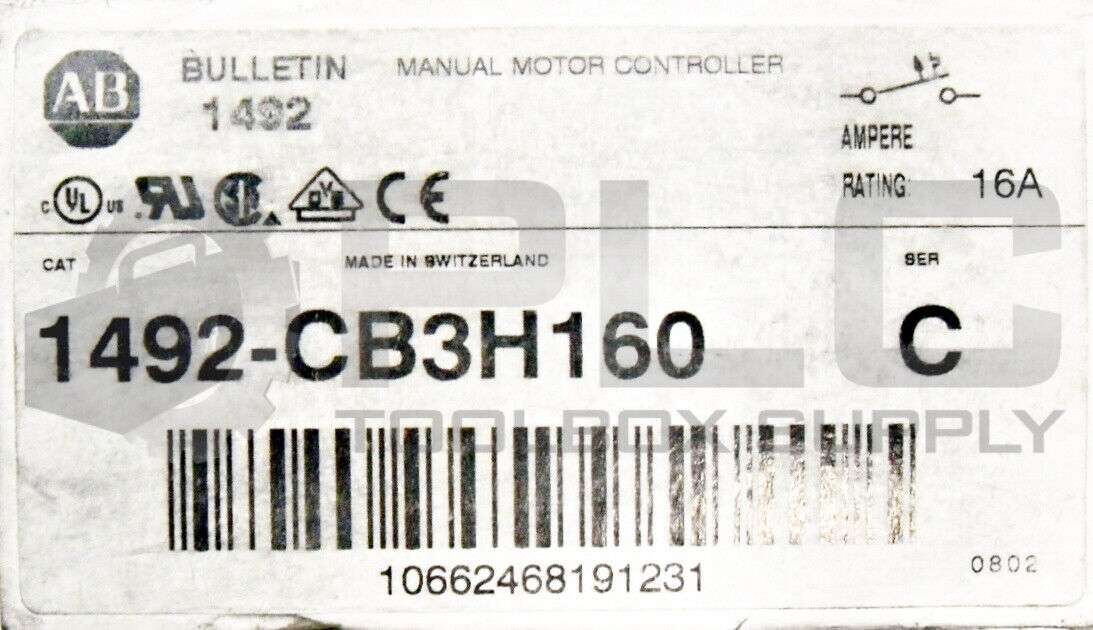 • NEW ALLEN BRADLEY 1492-CB3H160 CIRCUIT BREAKER 16A 10HP 3POLE SER C