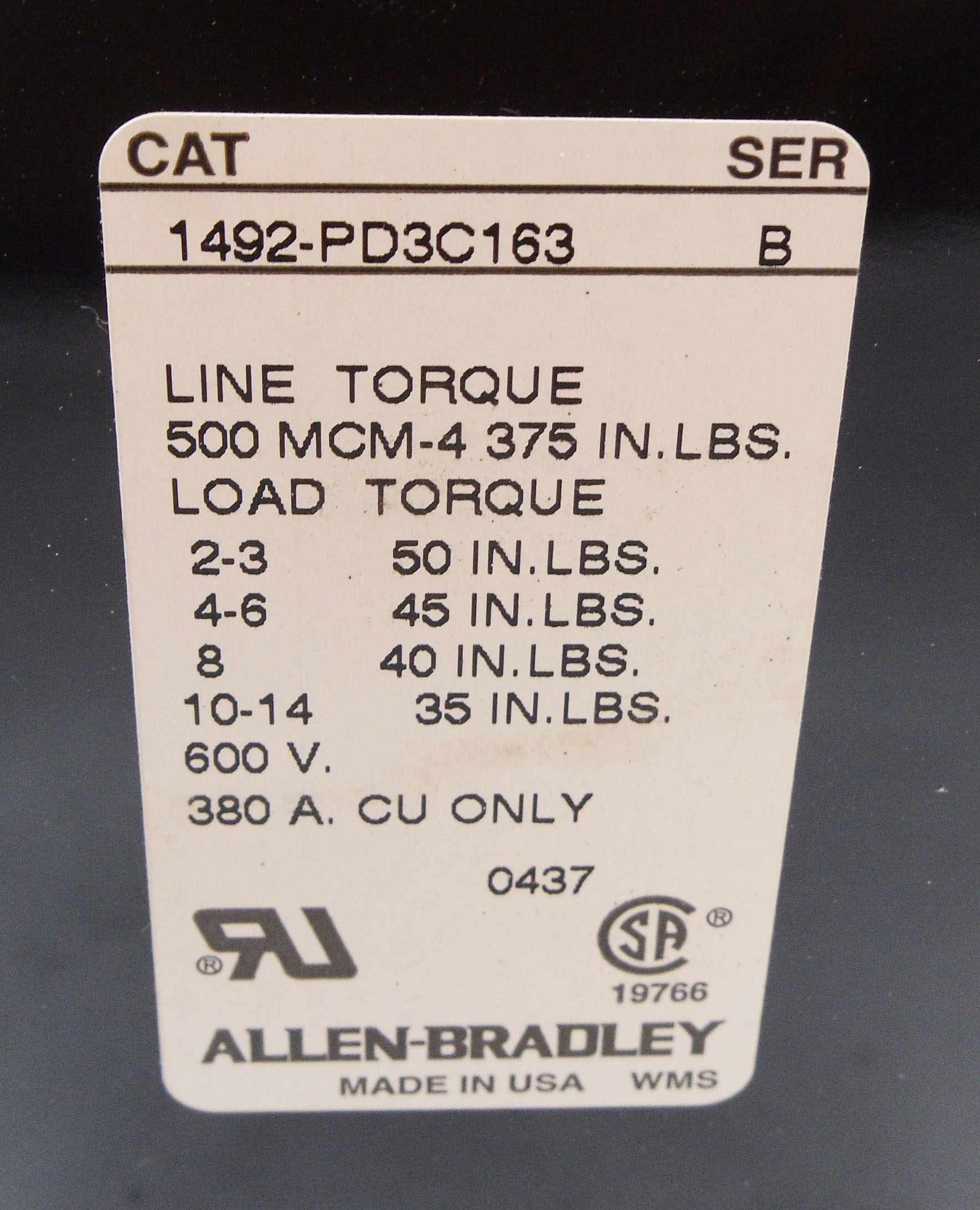 NEW ALLEN BRADLEY 1492-PD3C163 /B POWER TERMINAL BLOCK 600V