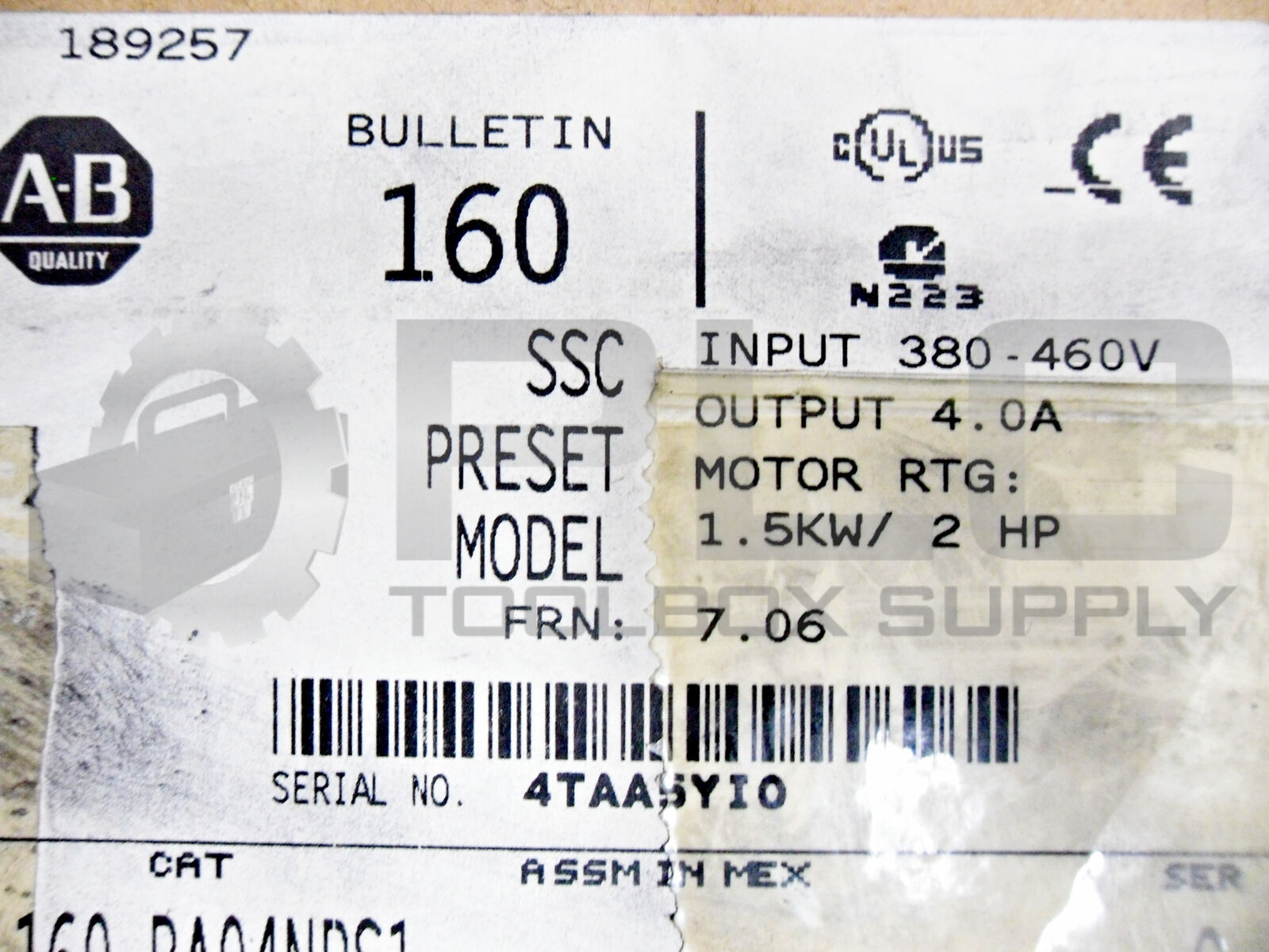 • NEW ALLEN BRADLEY 160-BA04NPS1 SER. C VARIBLE SPEED DRIVE 1.5KW/2HP