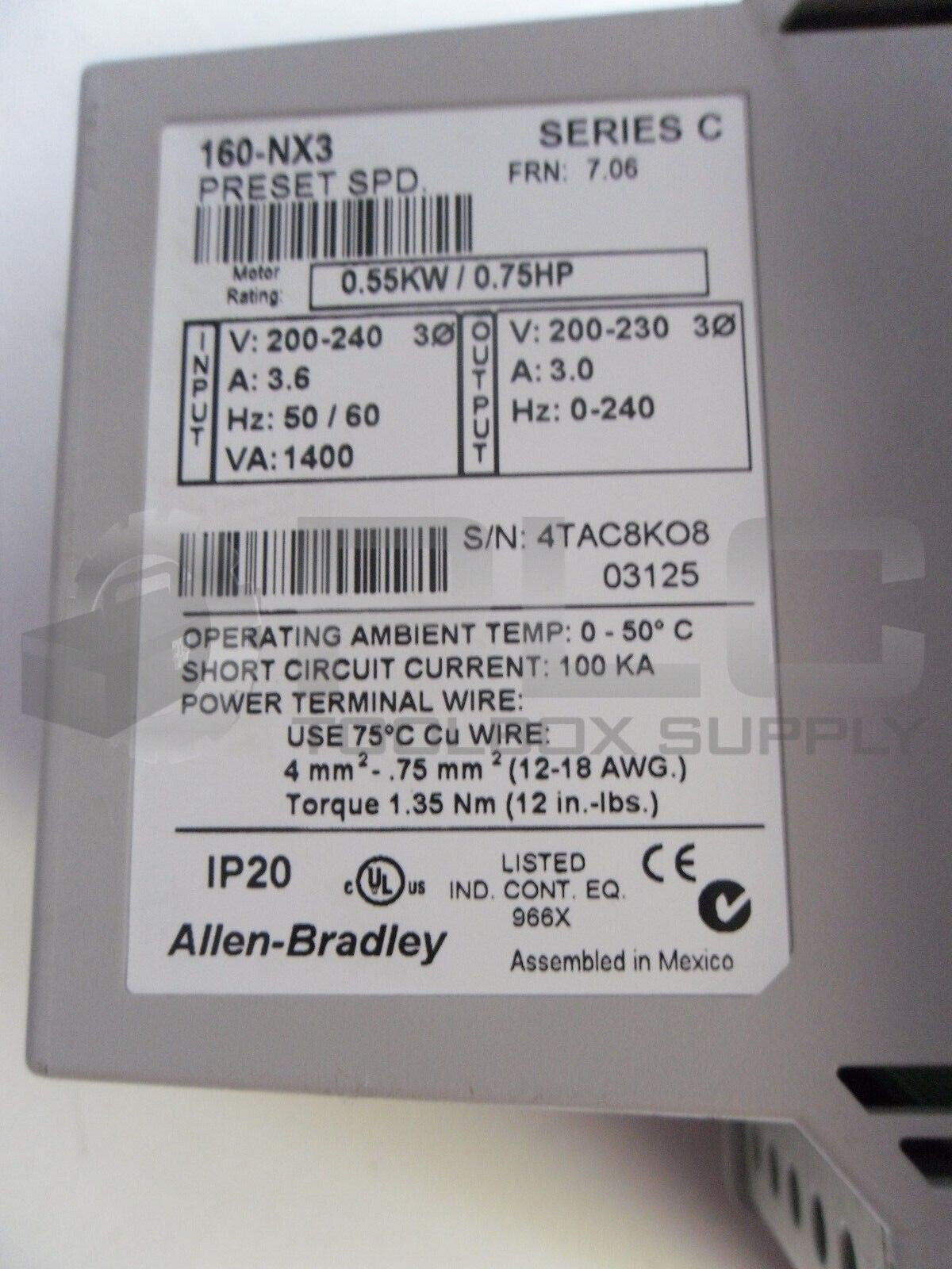 NEW ALLEN BRADLEY 160-NX3 SER C MOTOR DRIVE