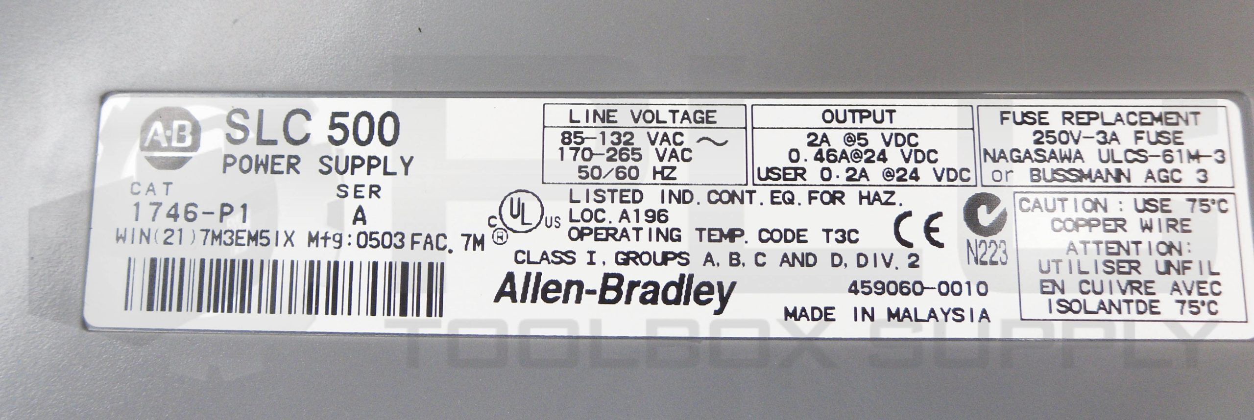 • NEW ALLEN BRADLEY 1746-P1 /A POWER SUPPLY 50/60HZ 85-132VAC 170-265VAC
