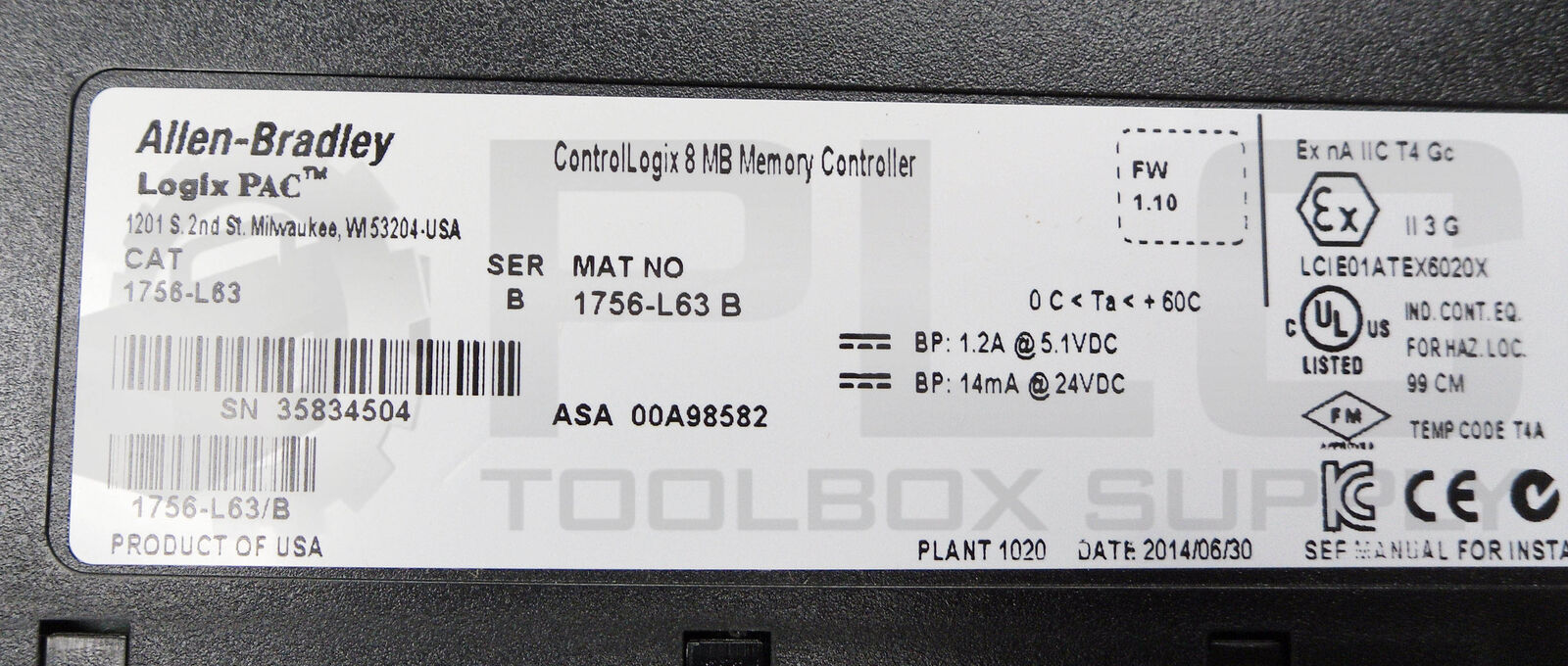 • NEW ALLEN BRADLEY 1756-L63 /B CONTROLLOGIX 8 MB MEMORY CONTROLLER