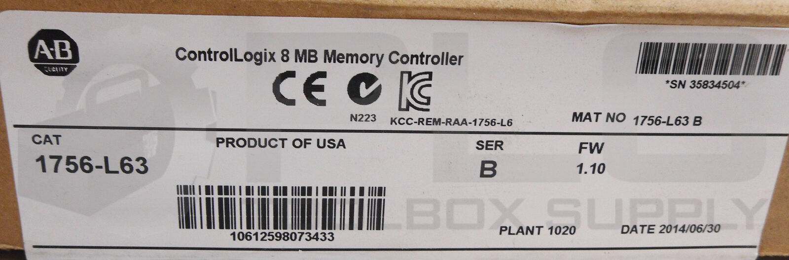 NEW ALLEN BRADLEY 1756-L63 /B CONTROLLOGIX 8 MB MEMORY CONTROLLER