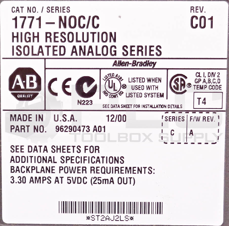 • NEW ALLEN BRADLEY 1771-N0C SER C HIGH RESOLUTION ISOLATED ANALOG SERIES