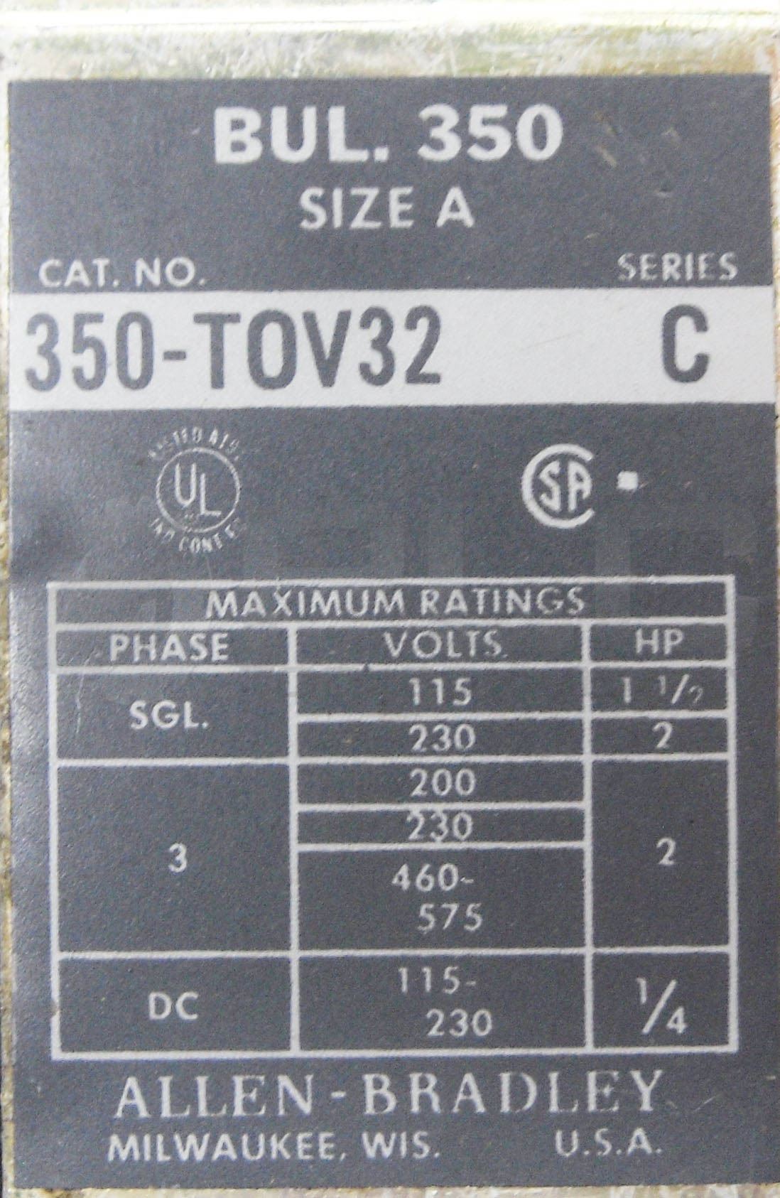 • NEW ALLEN BRADLEY 350-TOV32 /C REVERSING DRUM SWITCH STYLE A 575VAC *READ*
