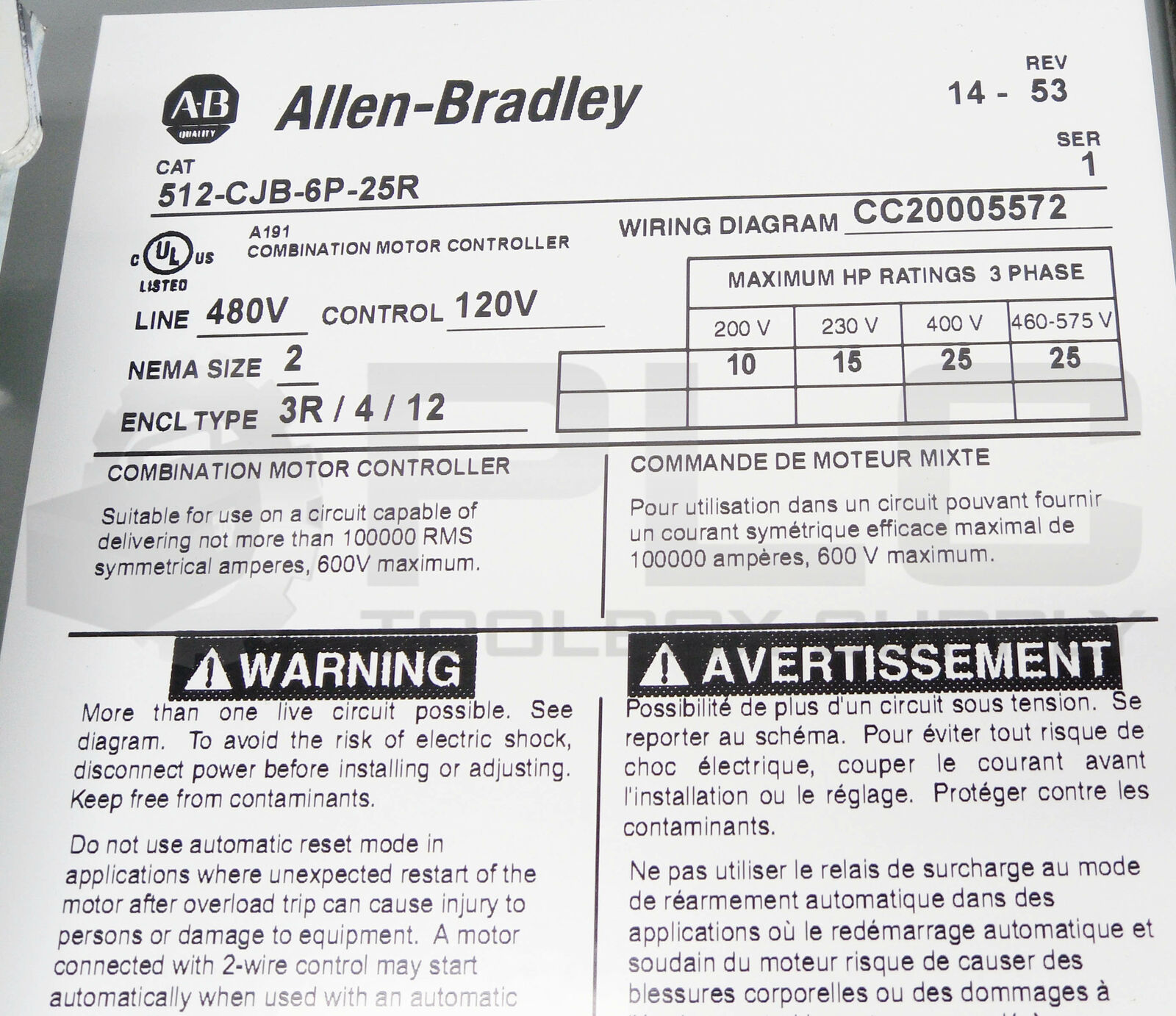 NEW ALLEN BRADLEY 512-CJB-6P-25R SER 1 COMBINATION MOTOR CONTROLLER TYPE 3R/4/12