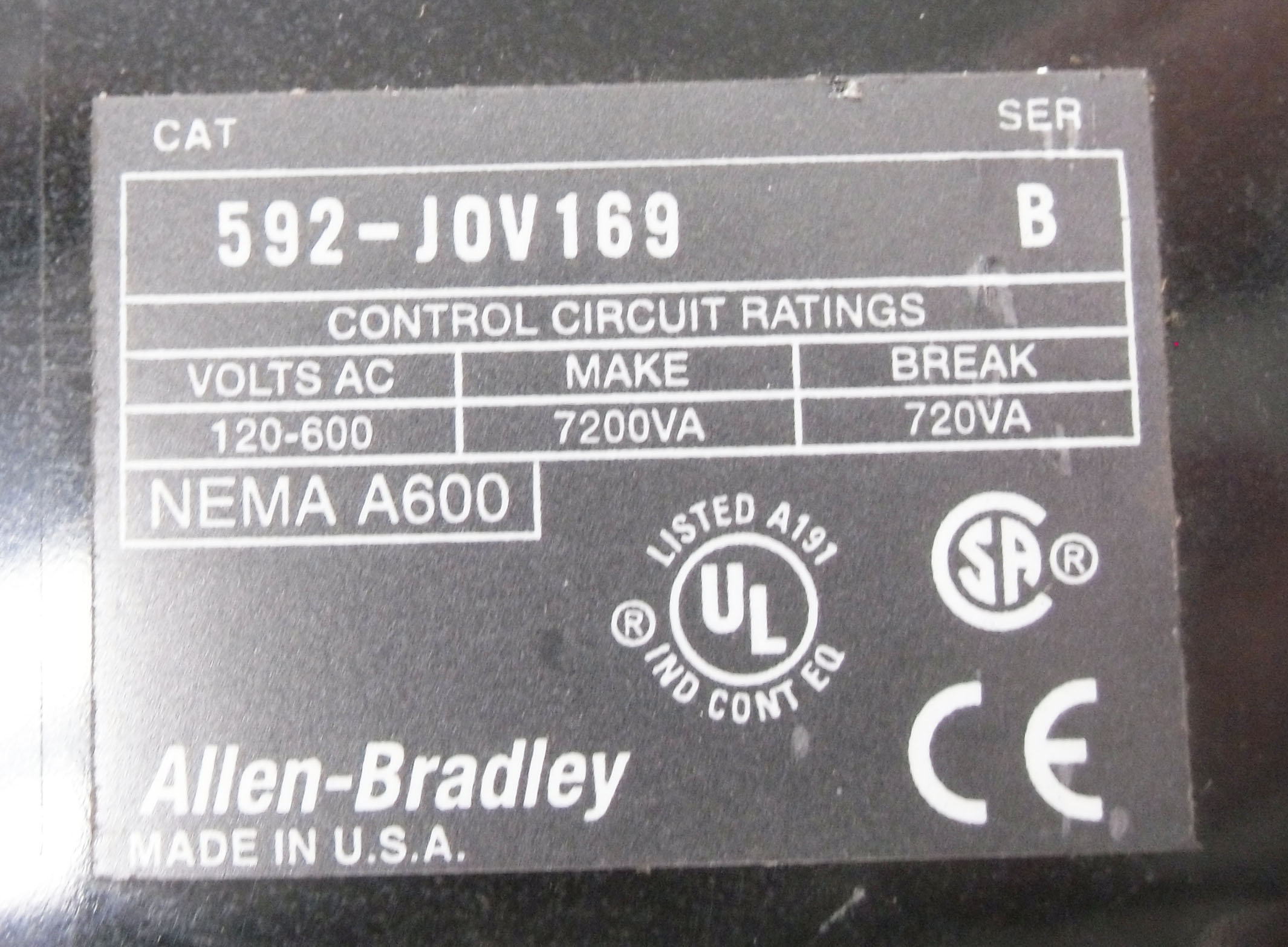 • NEW ALLEN BRADLEY 592-J0V169 /B OVERLOAD RELAY 120-600VAC