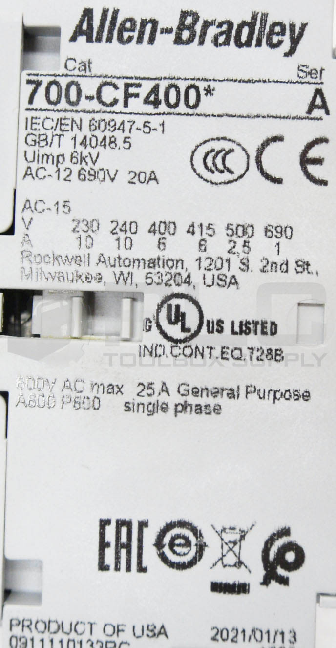 • NEW ALLEN BRADLEY 700-CF400* /A CONTACTOR 600VAC 25A