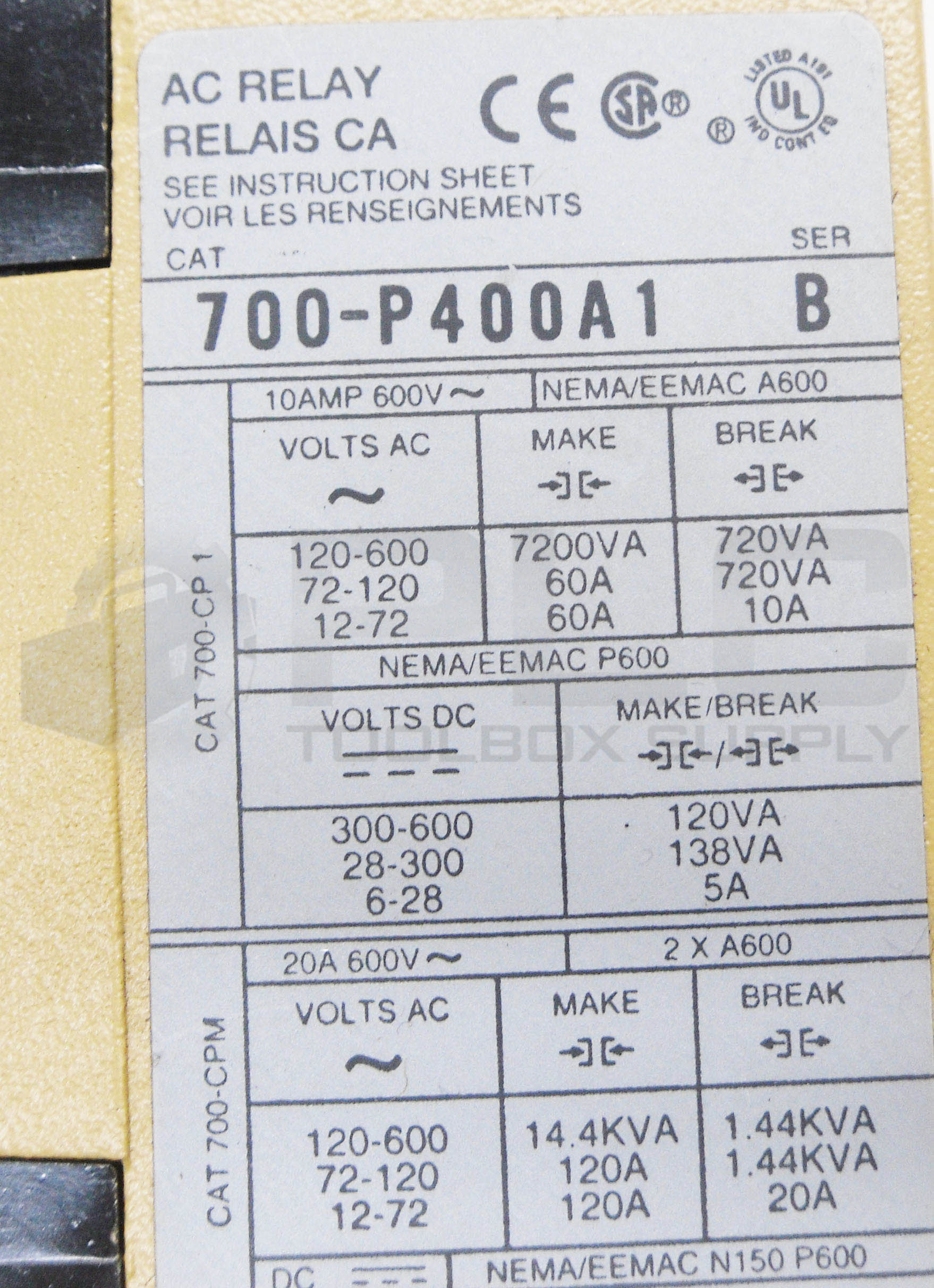 NEW ALLEN BRADLEY 700-PL600A1 /C RELAY W/ 700-PLL20A1 /B W/ 700-P400A1 /B *READ*