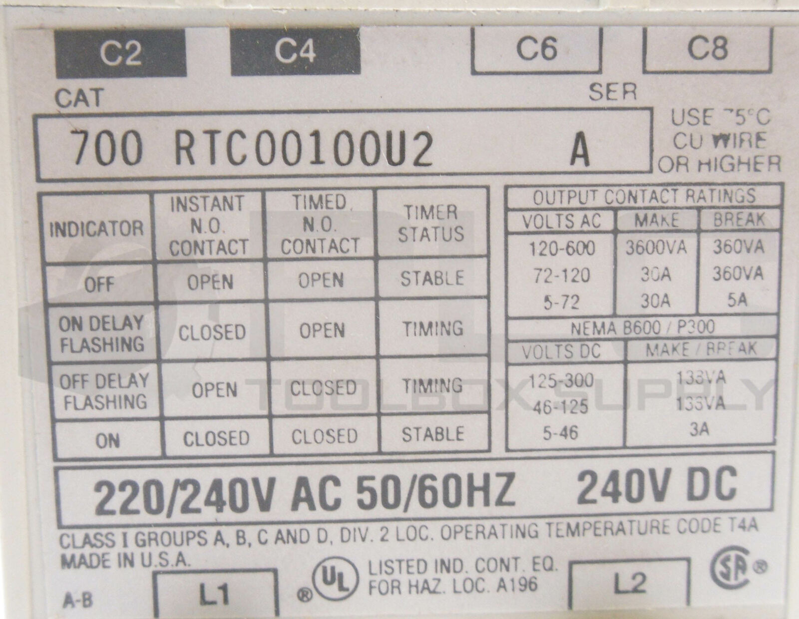 NEW ALLEN BRADLEY 700-RTC00100U2 SER A TIMING RELAY SOILD STATE 220/240V 50/60HZ