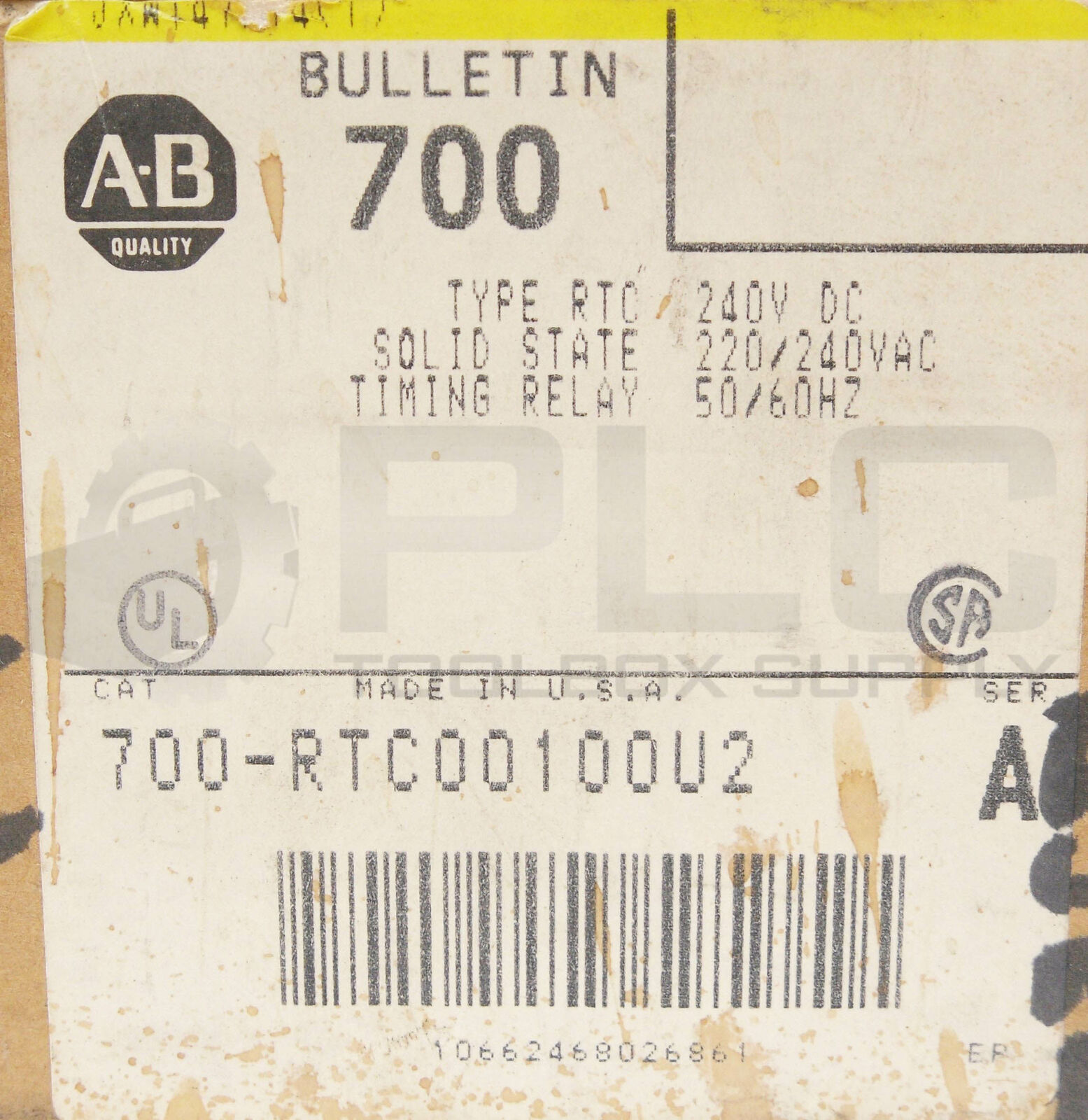 • NEW ALLEN BRADLEY 700-RTC00100U2 SER A TIMING RELAY SOILD STATE 220/240V 50/60HZ