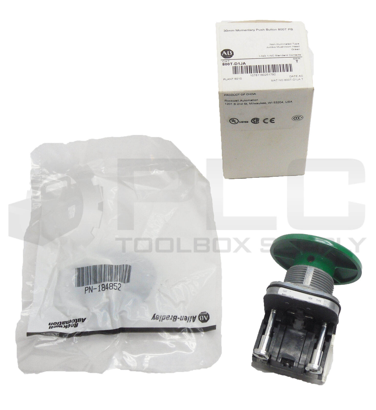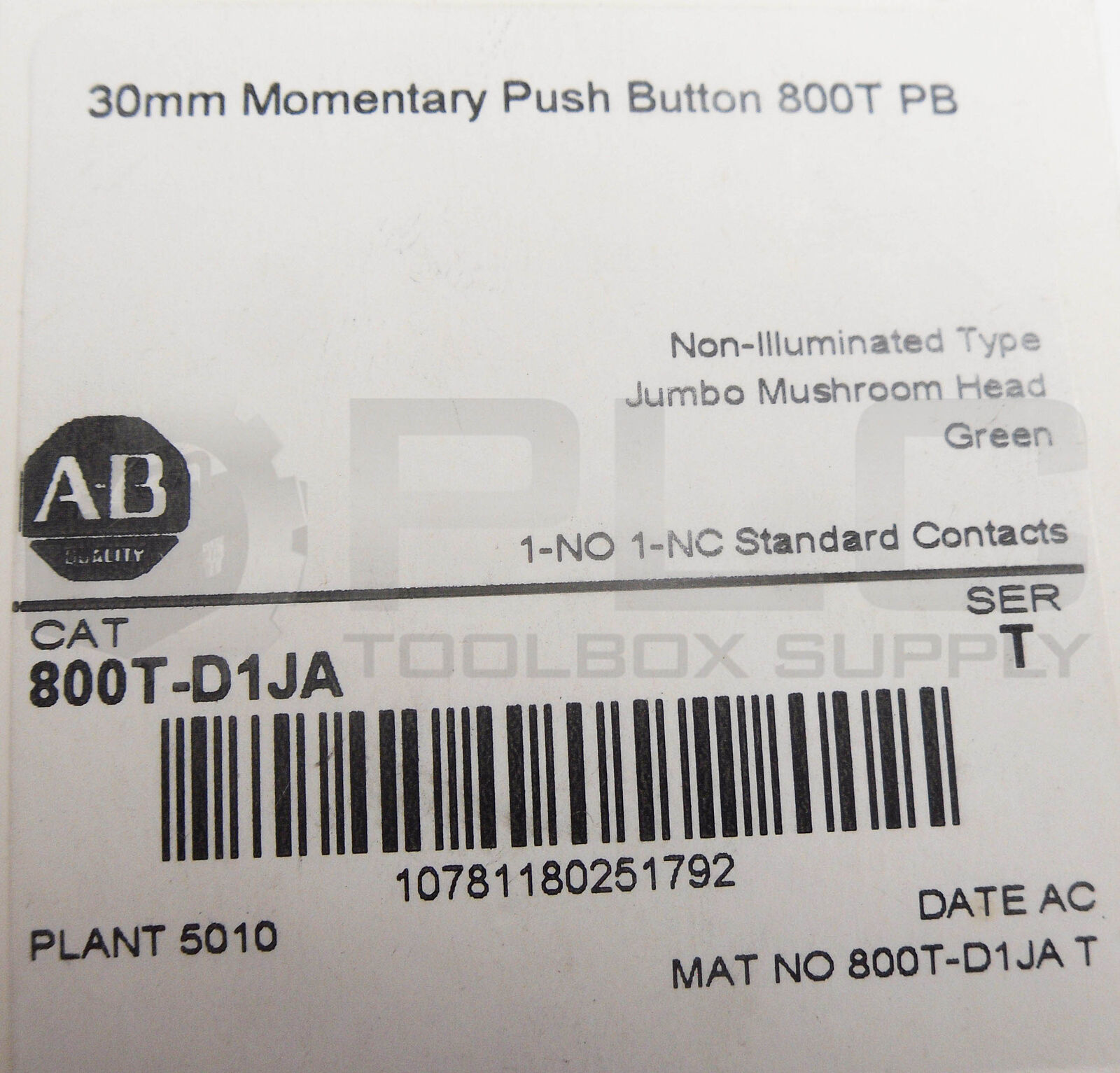 NEW ALLEN BRADLEY 800T-D1JA /T MOMENTARY PUSH BUTTON 30MM JUMBO MUSHROOM GREEN