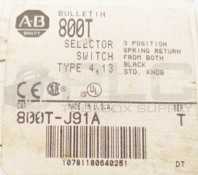 • NEW ALLEN BRADLEY 800T-J91A SER T SELECTOR SWITCH 3 POSITION W/800T-XA CONTACT