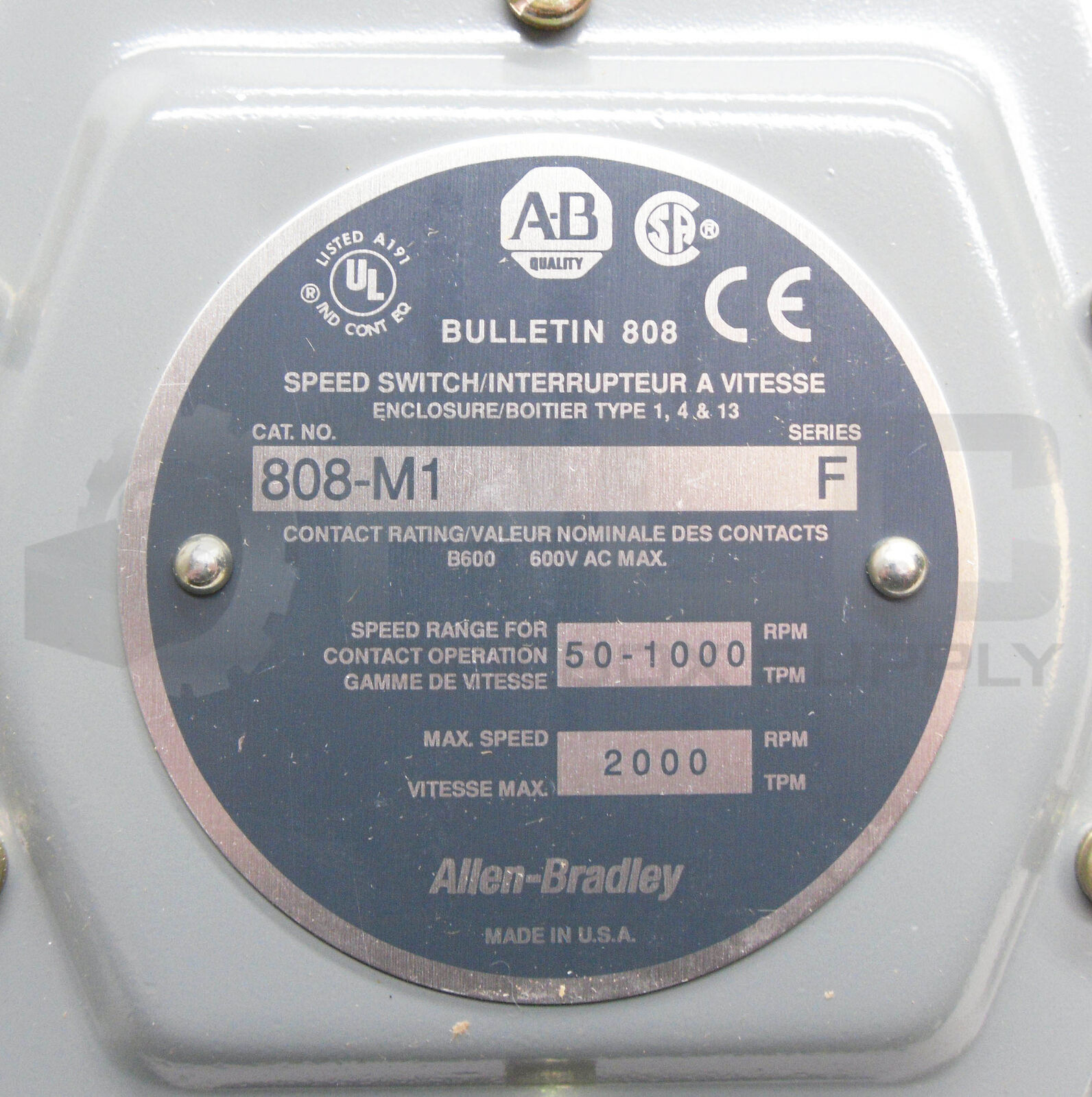 • NEW ALLEN BRADLEY 808-M1 /F SPEED SWITCH 50-1000RPM