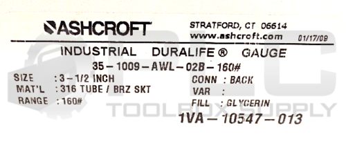 • NEW ASHCROFT 35-1009-AWL-02B-160 PRESSURE GAUGE