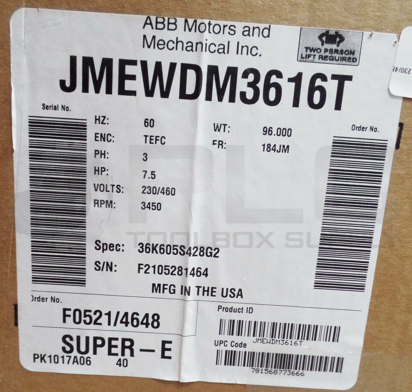 • NEW BALDOR JMEWDM3616T SUPER-E MOTOR 3450RPM 7.5HP FR:184JM