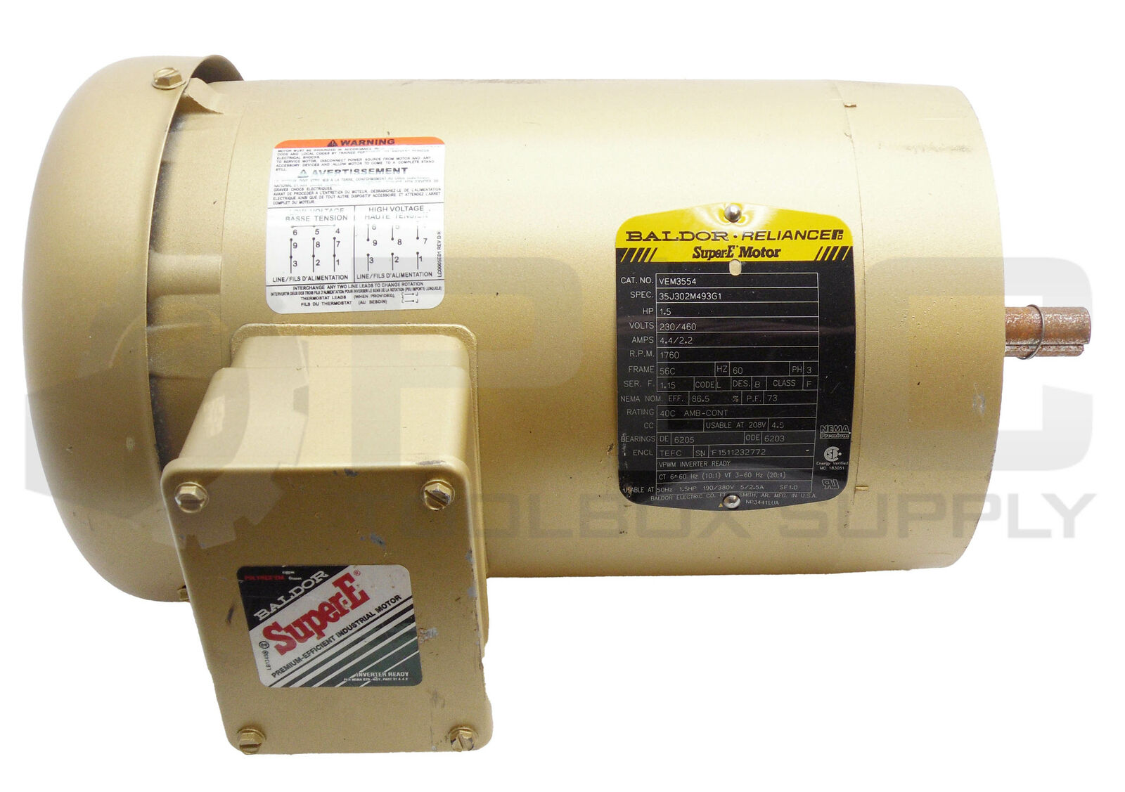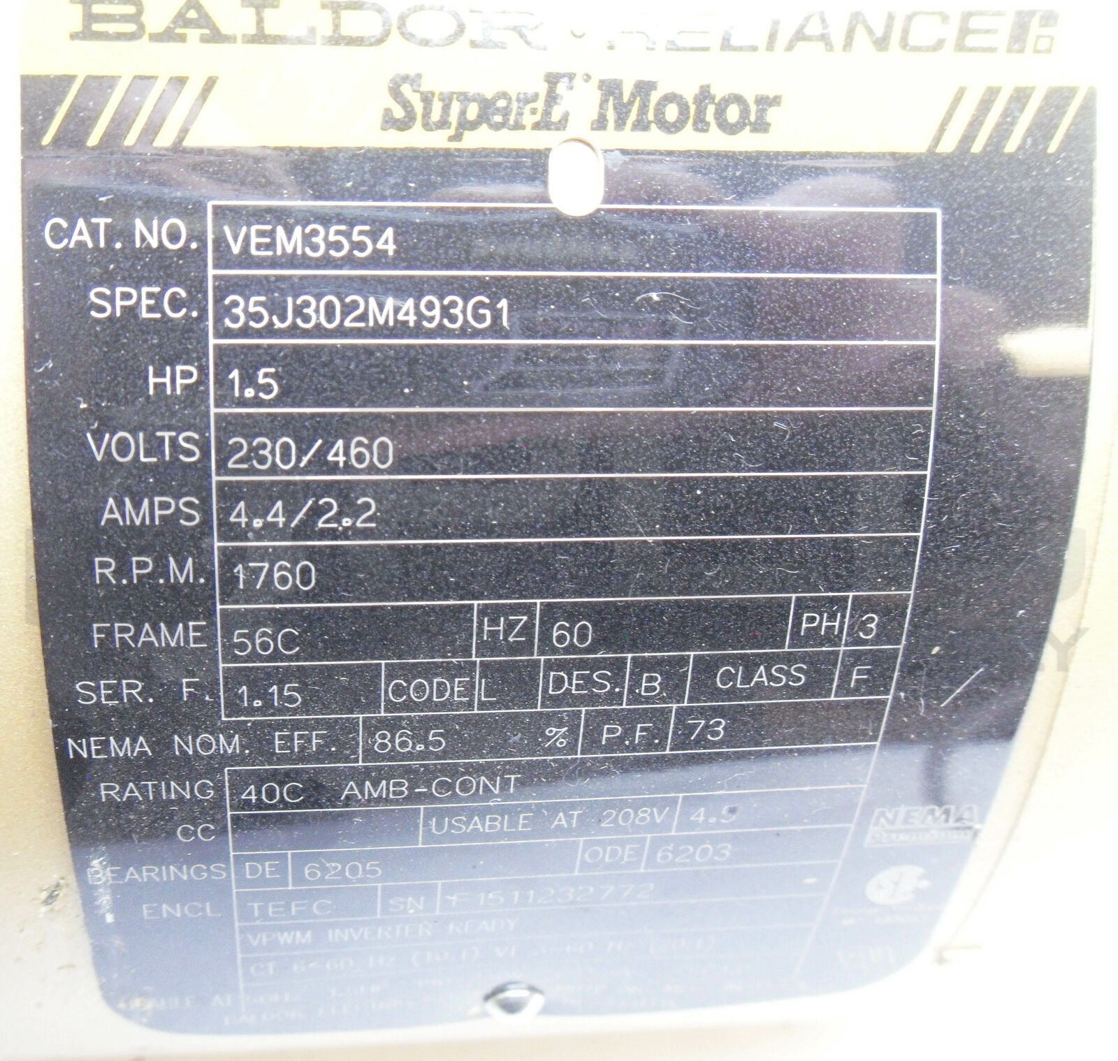 • NEW BALDOR VEM3554 SUPER E MOTOR 1.5HP 1760RPM 56C 230/460V 4.4/2.2A 3PH *READ*
