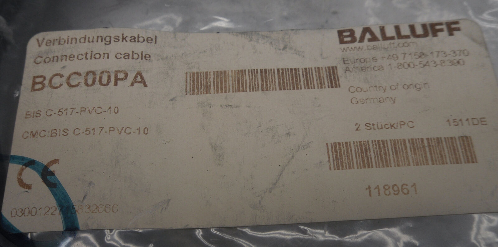 NEW BALLUFF BIS C-517-PVC-10 DOUBLE-ENDED CORDSETS BISC517PVC10 BCC00PA