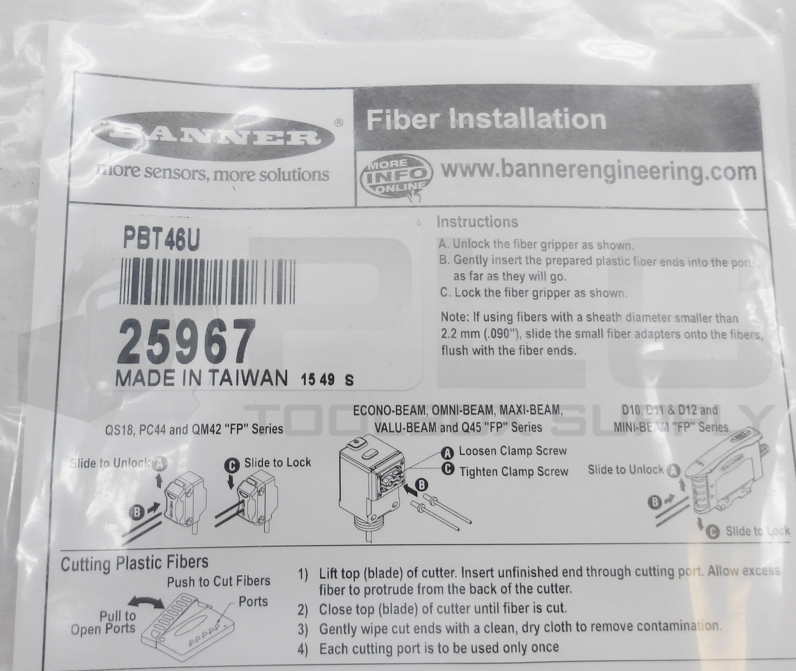 • NEW BANNER PBT46U FIBER OPTIC CABLE SENSOR 25967 PFC-4