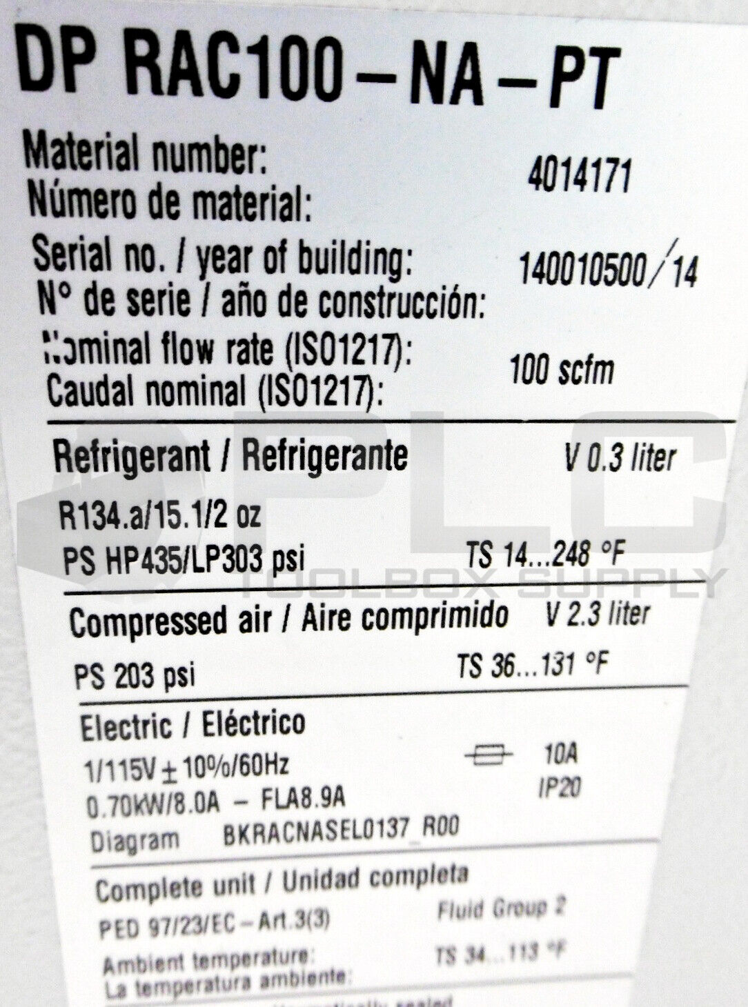 NEW BEKO DP RAC100-NA-PT DRYPOINT RA COMPRESSED AIR REFRIGERATION DRYER