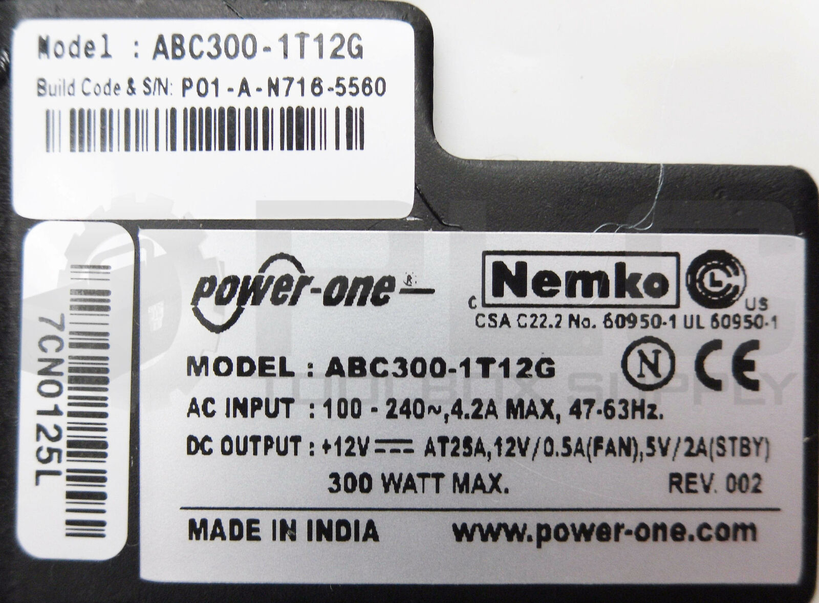 • NEW BEL POWER ONE SOLUTIONS ABC300-1T12G POWER SUPPLY 100-240V 4.2A 47-63HZ