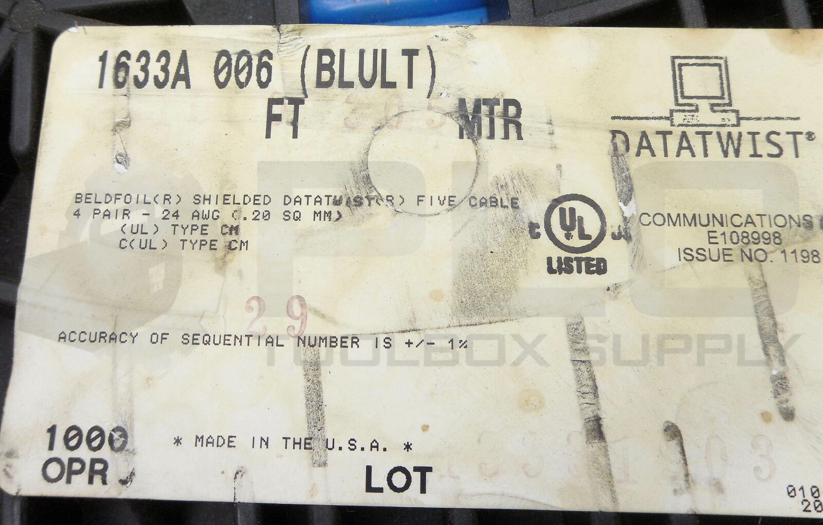 • NEW BELDEN 1633A 006 SHIELDED CABLE CAT 5 1901 1021 J16 APPROX 550' WEIGHT 17.60