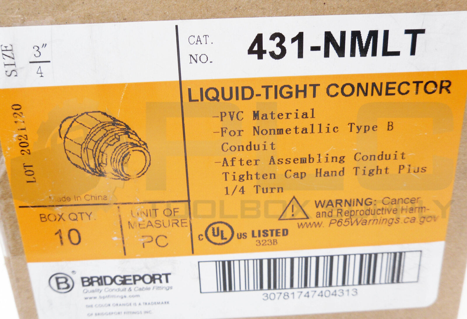 NEW BOX OF 10 BRIDGEPORT 471-NMLT 90DEG LIQUID-TIGHT CONNECTORS 3/4"