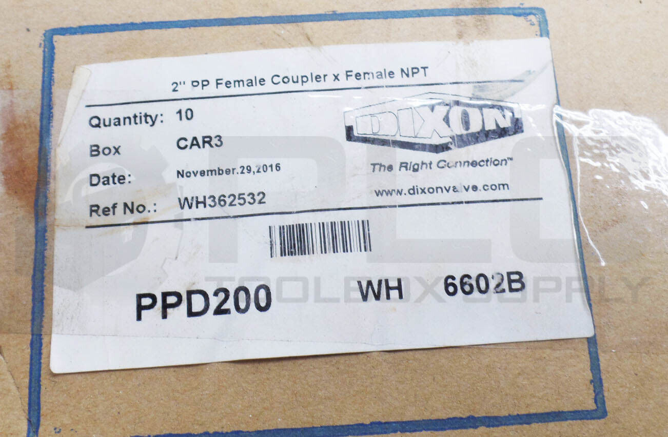 NEW BOX OF 10 DIXON PPD200 2" PP FEMALE COUPLE X FEMALE NPT